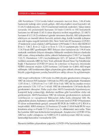 hastanın ise 44’ünde (%43.1) idrar dipstick testleri negatifleşti. 22 AKI’li
