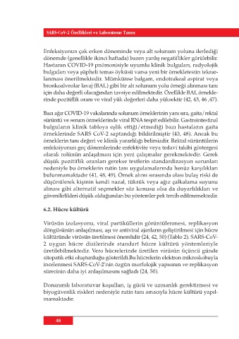 kültüründe virüsün üretilmesi önemlidir (24, 42, 50) (Tablo 2). SARS-CoV-