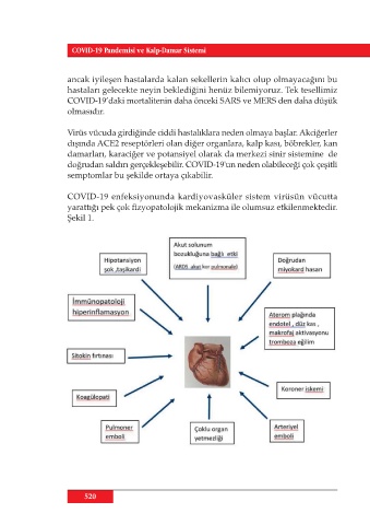 Şekil 1. COVID-19 enfeksiyonunun kardiyovasküler sisteme etkileri