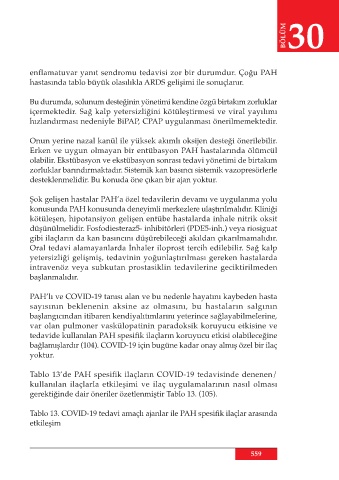 Tablo 13’de PAH spesifik ilaçların COVID-19 tedavisinde denenen/