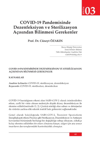 Anahtar kelimeler: COVID-19, sterilizasyon, dezenfeksiyon