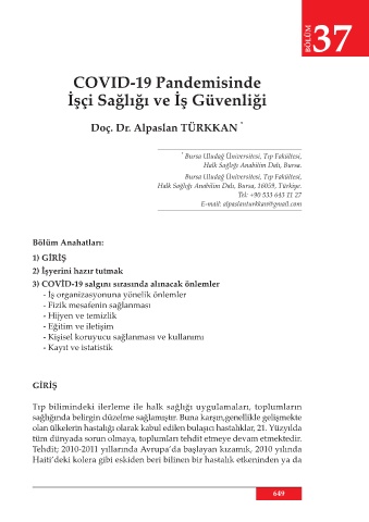 3) COVİD-19 salgını sırasında alınacak önlemler