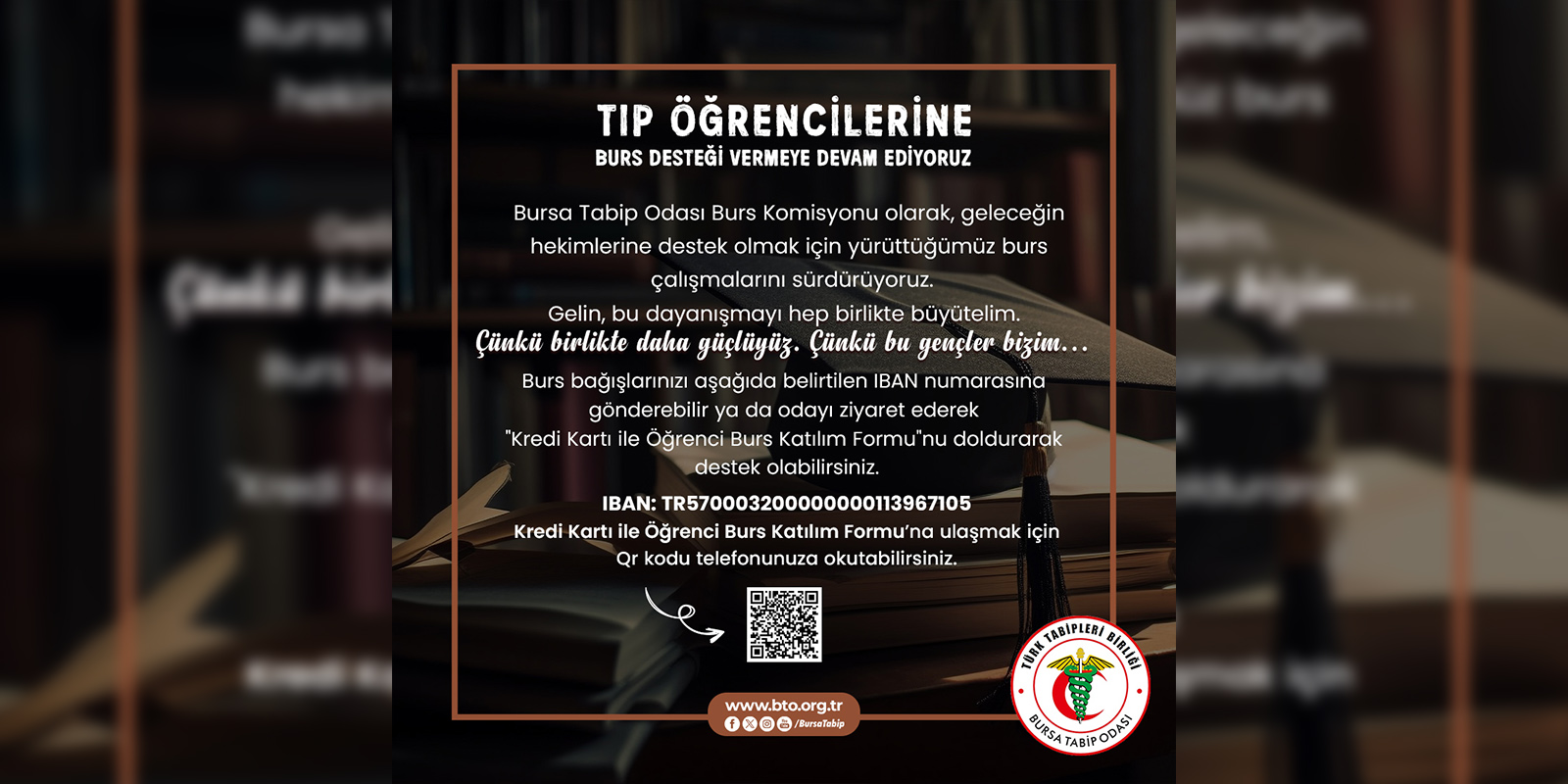 Bursa Tabip Odası Burs Komisyonu olarak, geleceğin hekimlerine destek olmak için burs çalışmalarımızı sürdürüyoruz.