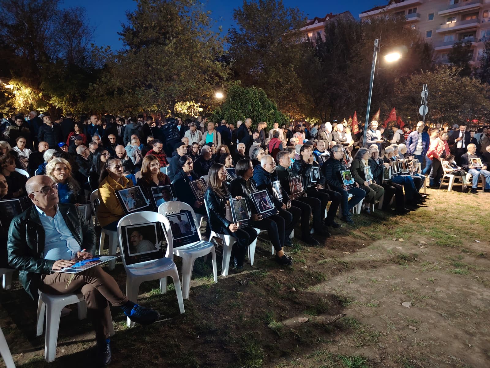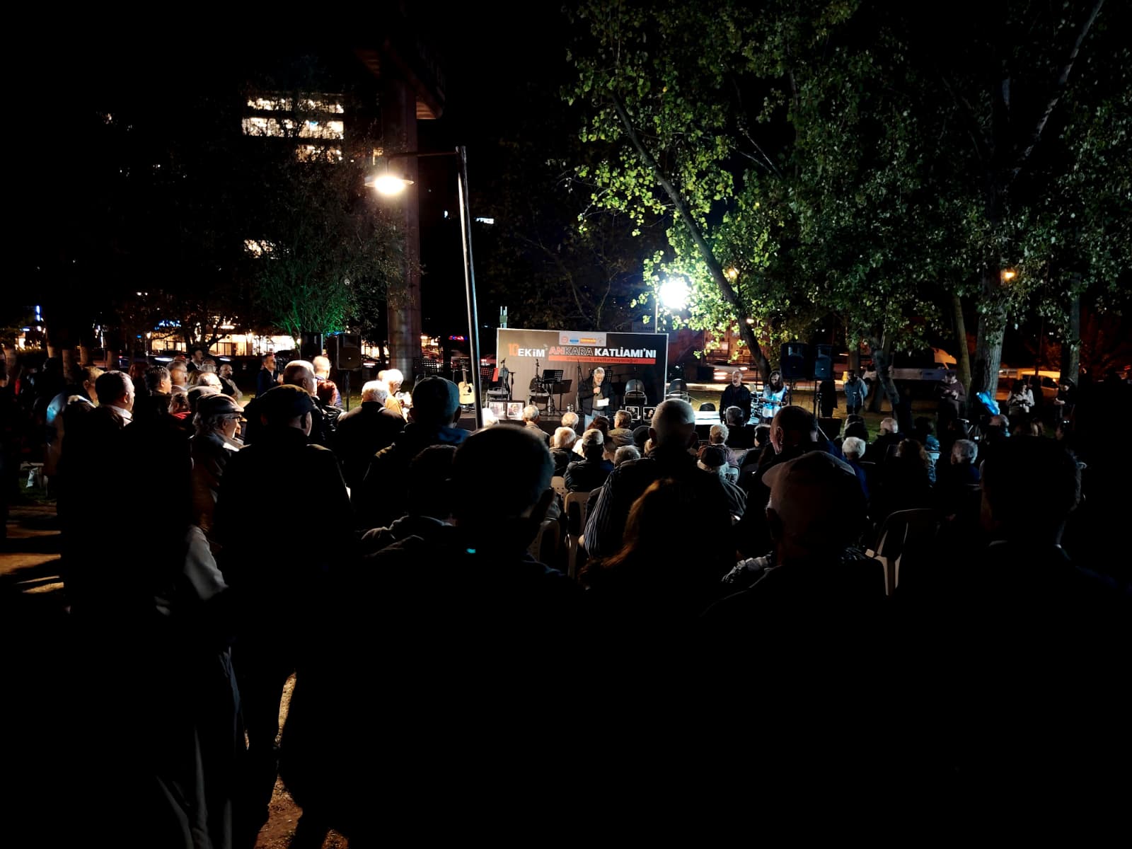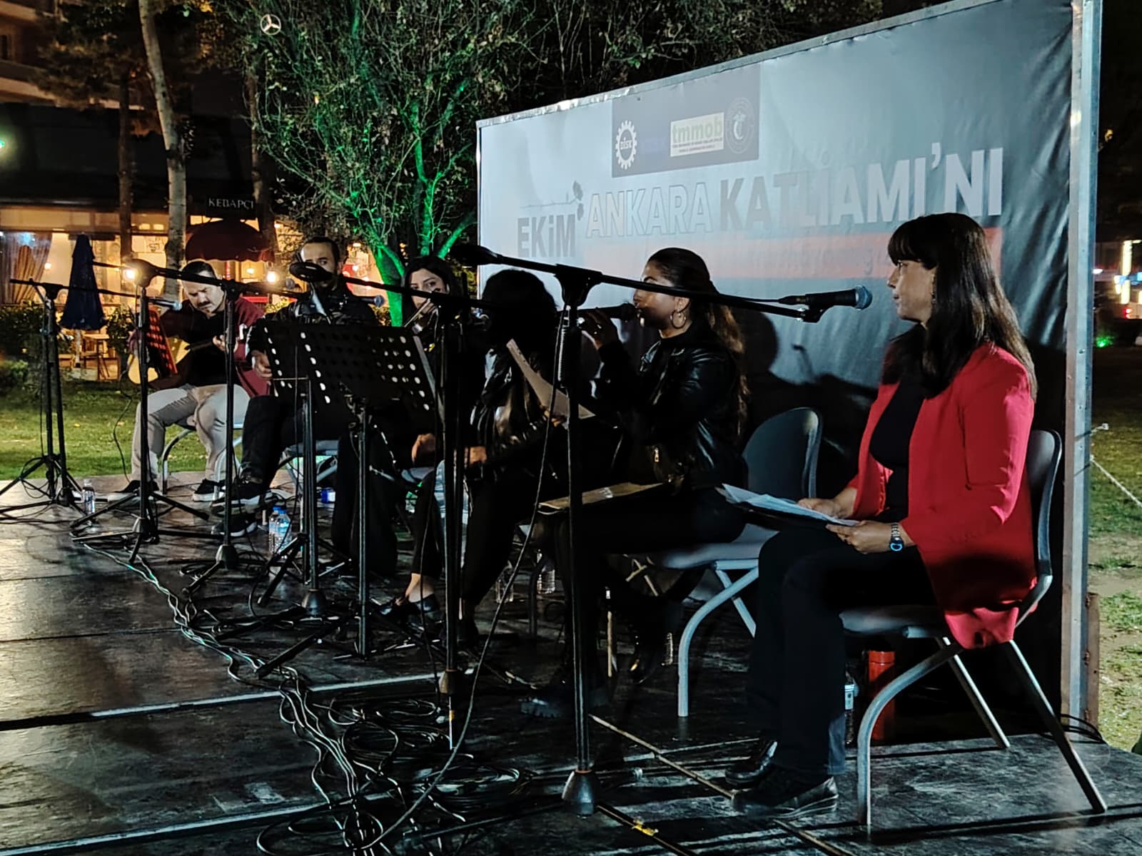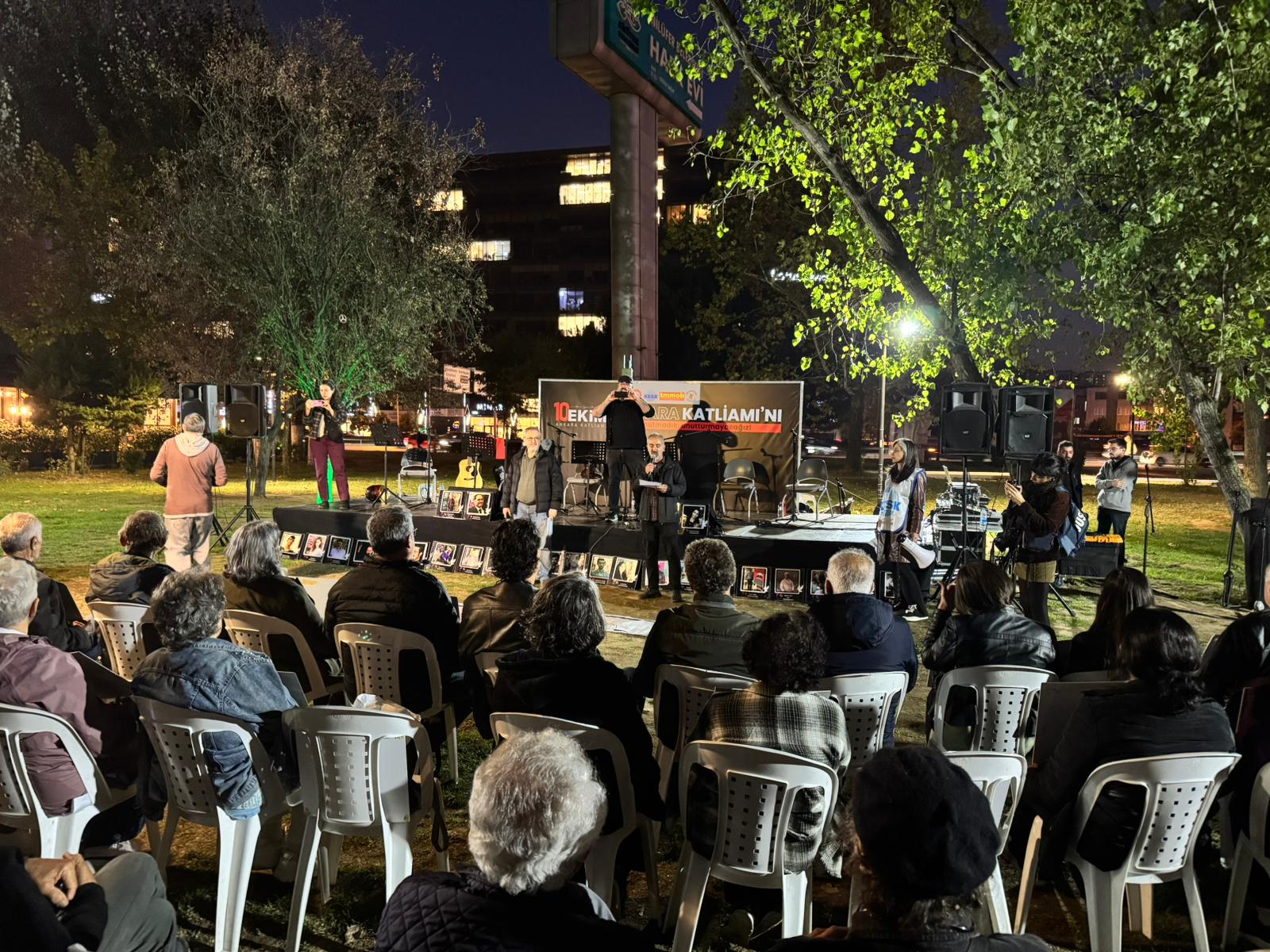 DİSK, KESK, TMMOB ve BTO’nun çağrısıyla Üç Fidan Parkı’nda gerçekleştirilen anma programı, saygı duruşuyla başladı. “Unutmadık, unutturmayacağız” pankartının açıldığı etkinlikte yapılan ortak açıklamada, Ankara Garı önünde “Emek, Barış ve Demokrasi” demek için toplanan binlerce kişinin hedef alındığı hatırlatılarak, “104 arkadaşımız o meydanda yaşamını yitirdi, 500’e yakın insan yaralandı. Ama o gün söylenen sözü kaybetmedik: Barış istiyoruz, adalet istiyoruz, özgür bir ülke istiyoruz” denildi.