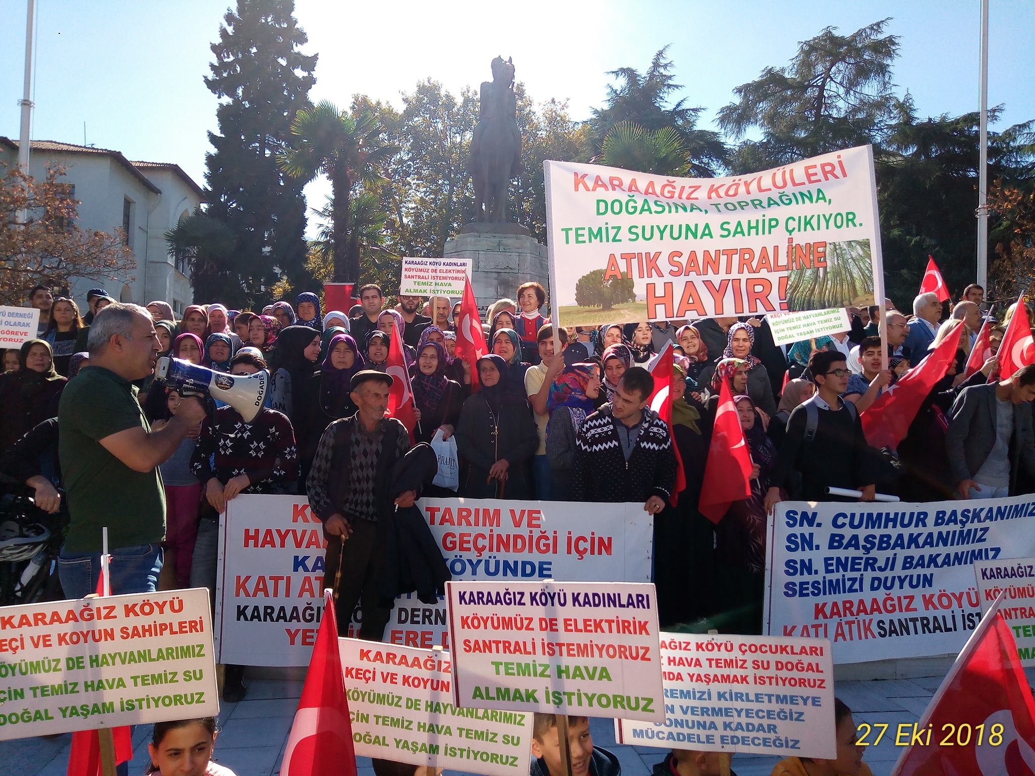 Başından bu güne kadar DOĞADER ile birlikte Katı atık yakma santraline karşı yaşam hakkı mücadelesi başlatan BÜYÜKORHAN-KARAAĞIZ halkı 27 Ekim 2018 Cumartesi günü Atatürk anıtı önünde basın açıklaması ve eylem gerçekleştirdi. Eyleme Doğader ve Karaağız halkı ile birlikte çok sayıda siyasi parti, dernek, Akademik Oda temsilcileri, sivil toplum kuruluşları ve vatandaşlar katıldı.