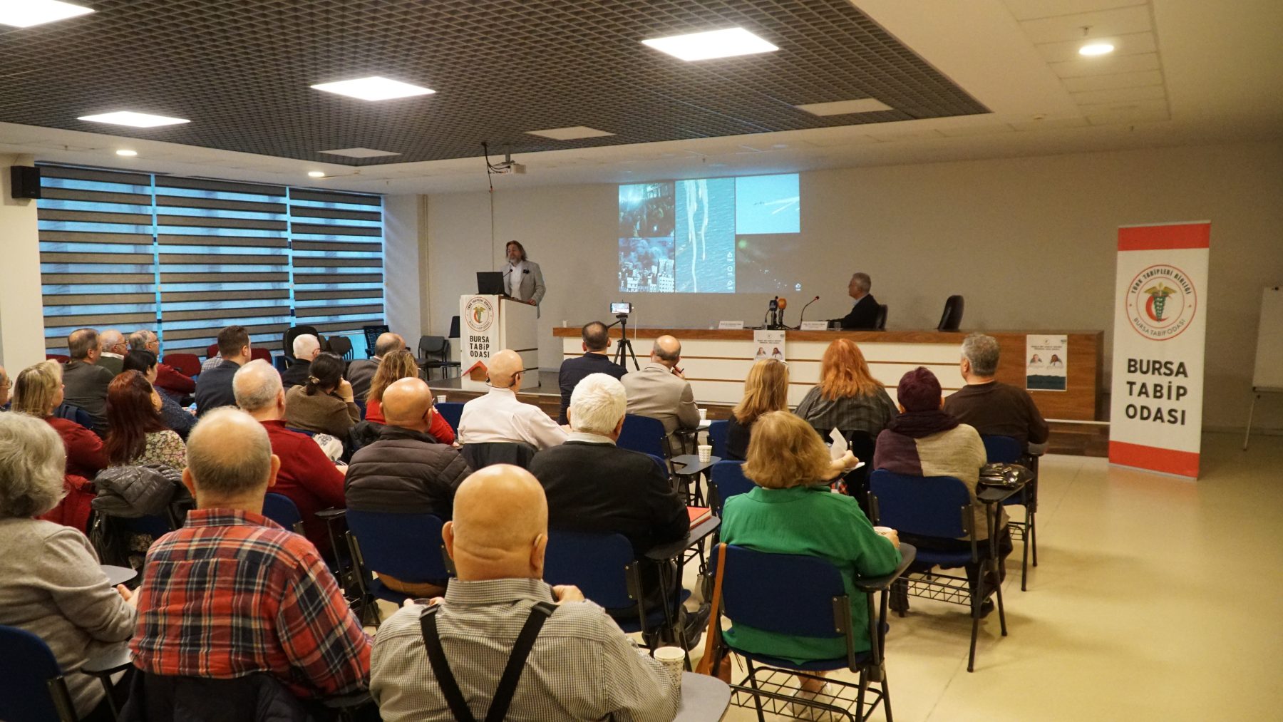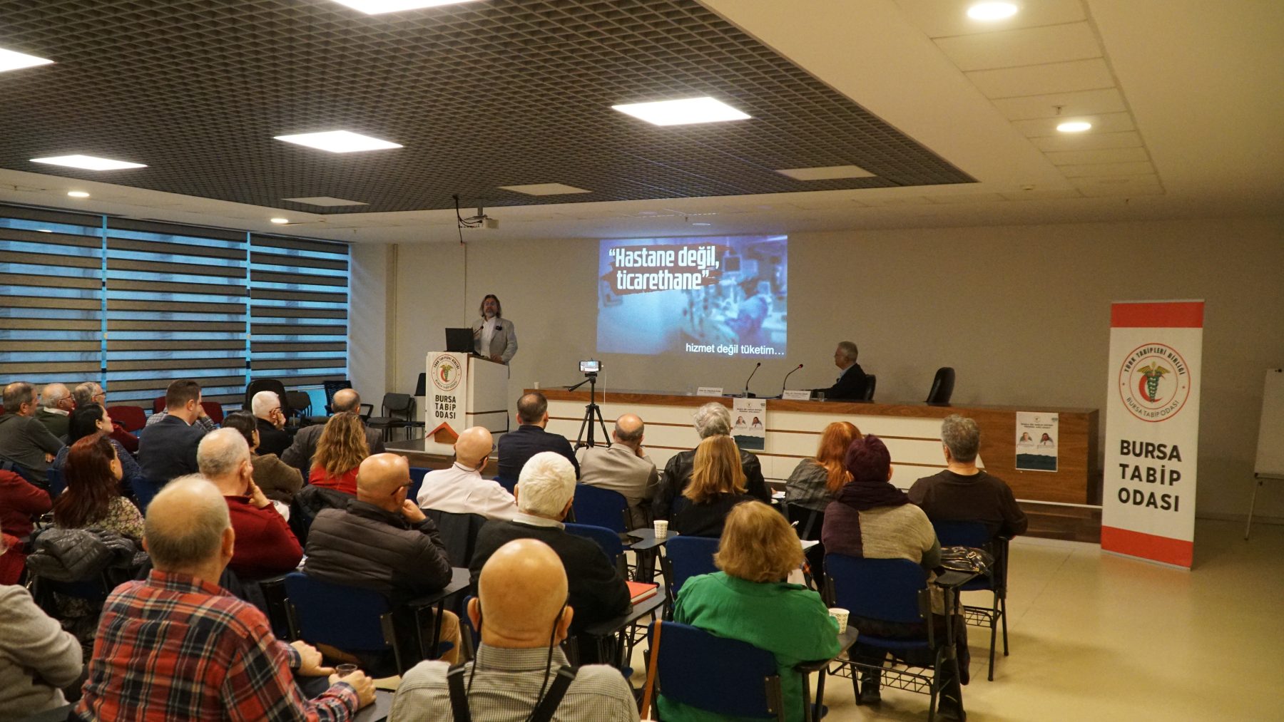 Panele, Bursa Milletvekili Prof. Dr. Kayıhan Pala ve Göğüs Hastalıkları Uzmanı UDEK YK Üyesi Doç. Dr. Osman Elbek konuşmacı olarak katıldı. Programa; Bursa Tabip Odası Başkanı Dr. Kadir Binbaş, BTO Genel Sekreteri Dr. Muhsin Güllü, BTO Odası Yönetim Kurulu Üyelerinden Dr. Ferda Firdin, Dr. Deniz Alpan, Dr. Kenan Ergus, BTO önceki dönem başkanlarından Prof. Dr. Alpaslan Türkkan, Dr. Güzide Elitez, Dr. Ertuğrul Aydın, Dr. Candan Coşkun, Dr. Bülent Aslanhan, Bursa Veteriner Hekimler Odası Başkanı Melike Baysal, sivil toplum temsilcileri ve basın mensupları katıldı.