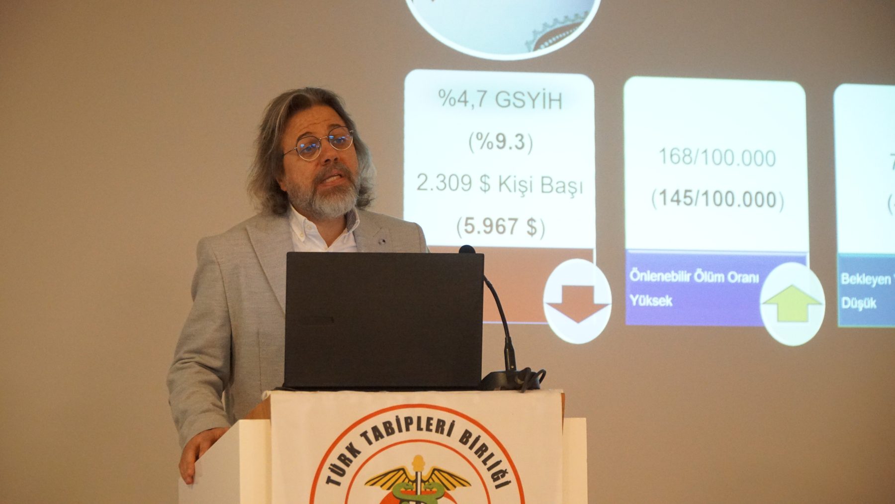 Verilere dayanarak sunumuna devam eden Dr. Elbek, “Türkiye birinci basamakta koruyucu müdahalelerle kazanabileceği yaşamlarını kaybediyor. Bu, tedavi edilebilir ölümlerin önlememesi anlamına geliyor. İki yıl önce veriler bu kadar ciddi değilken son iki yılda olumlu değil olumsuz bir noktaya gittik. Bunun en büyük nedeni sürecin iyi yönetilmemesidir. OECD ülkelerinde sağlık hizmetlerinden memnuniyet oranı ortalama yüzde 64 seviyesinde. Türkiye’de ise bu oran yüzde 41’lere kadar gerilemiş durumda. Vatandaşlar da artık sağlık hizmetlerinde değişim istiyor” şeklinde konuştu.