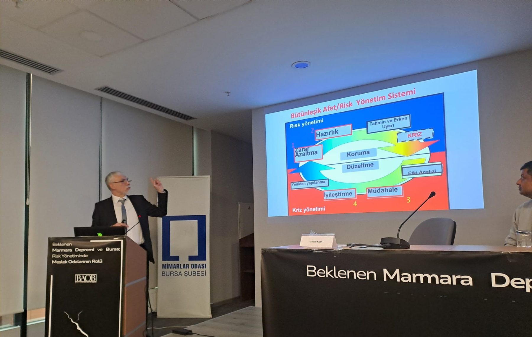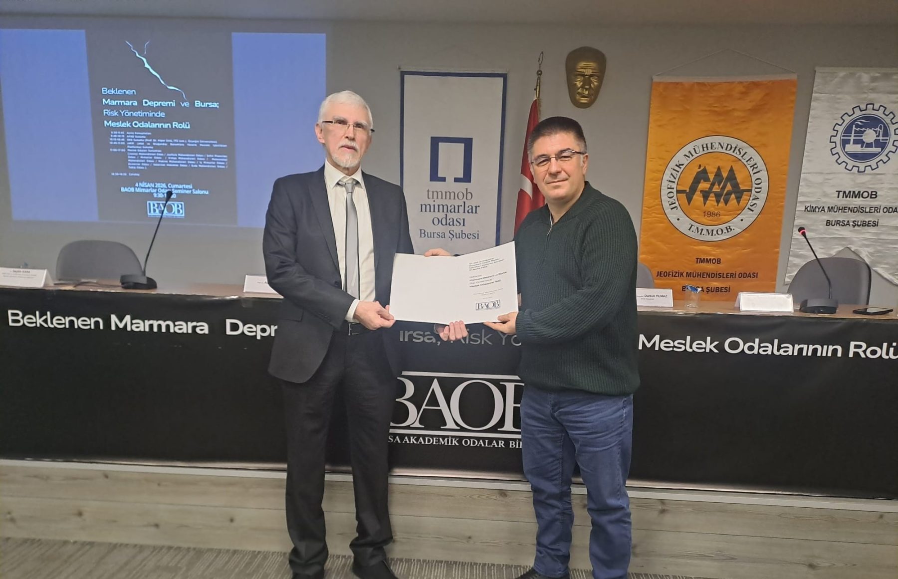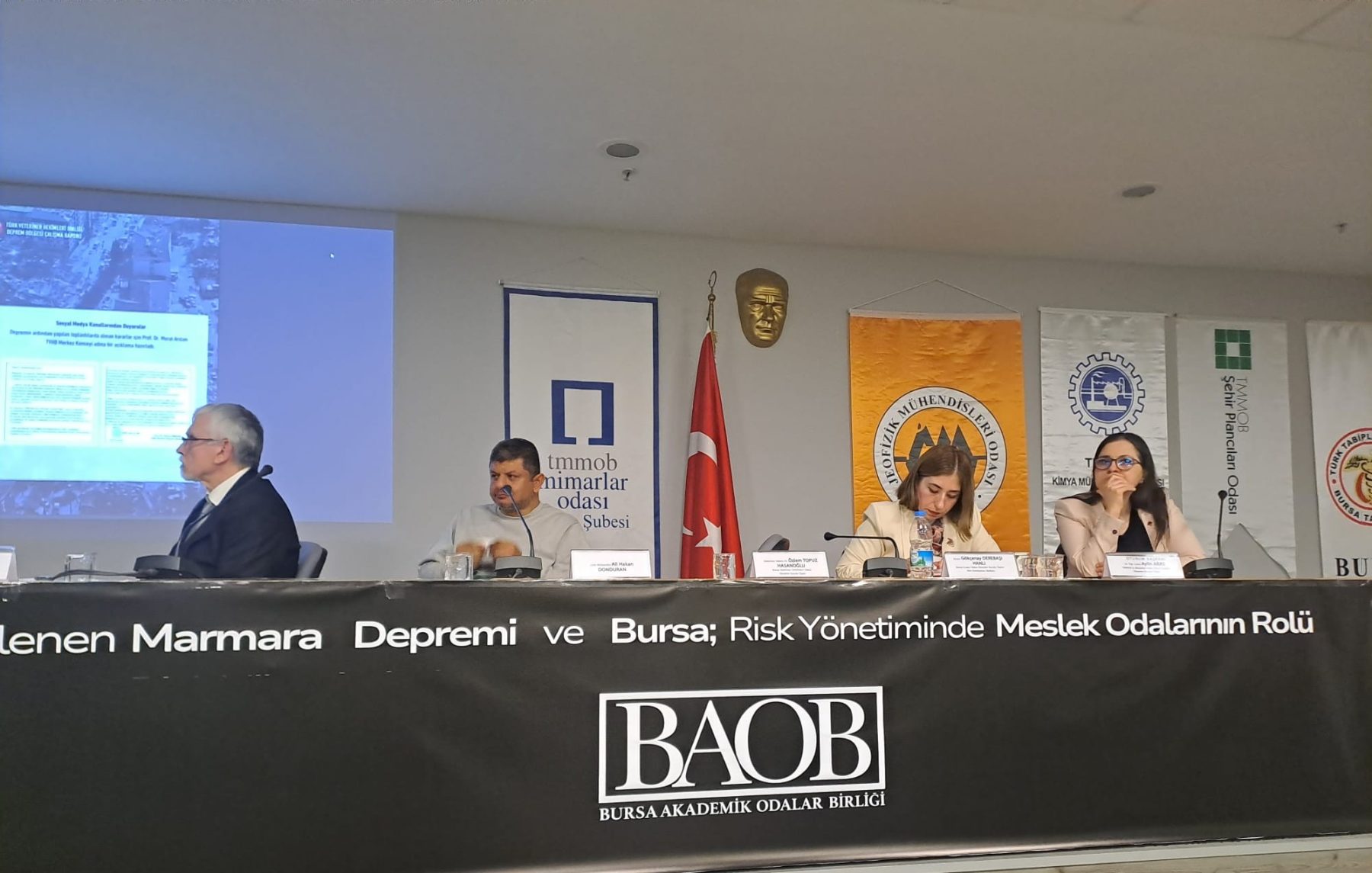 Sekreteryasını Bursa Tabip Odası ve Bursa Mimarlar Odası’nın yürüttüğü, “Beklenen Marmara Depremi ve Bursa; Risk Yönetiminde Meslek Odalarının Rolü” başlıklı etkinlik ve çalıştay, 4 Nisan 2026 Cumartesi günü BAOB Mimarlar Odası Seminer Salonu’nda gerçekleştirildi.