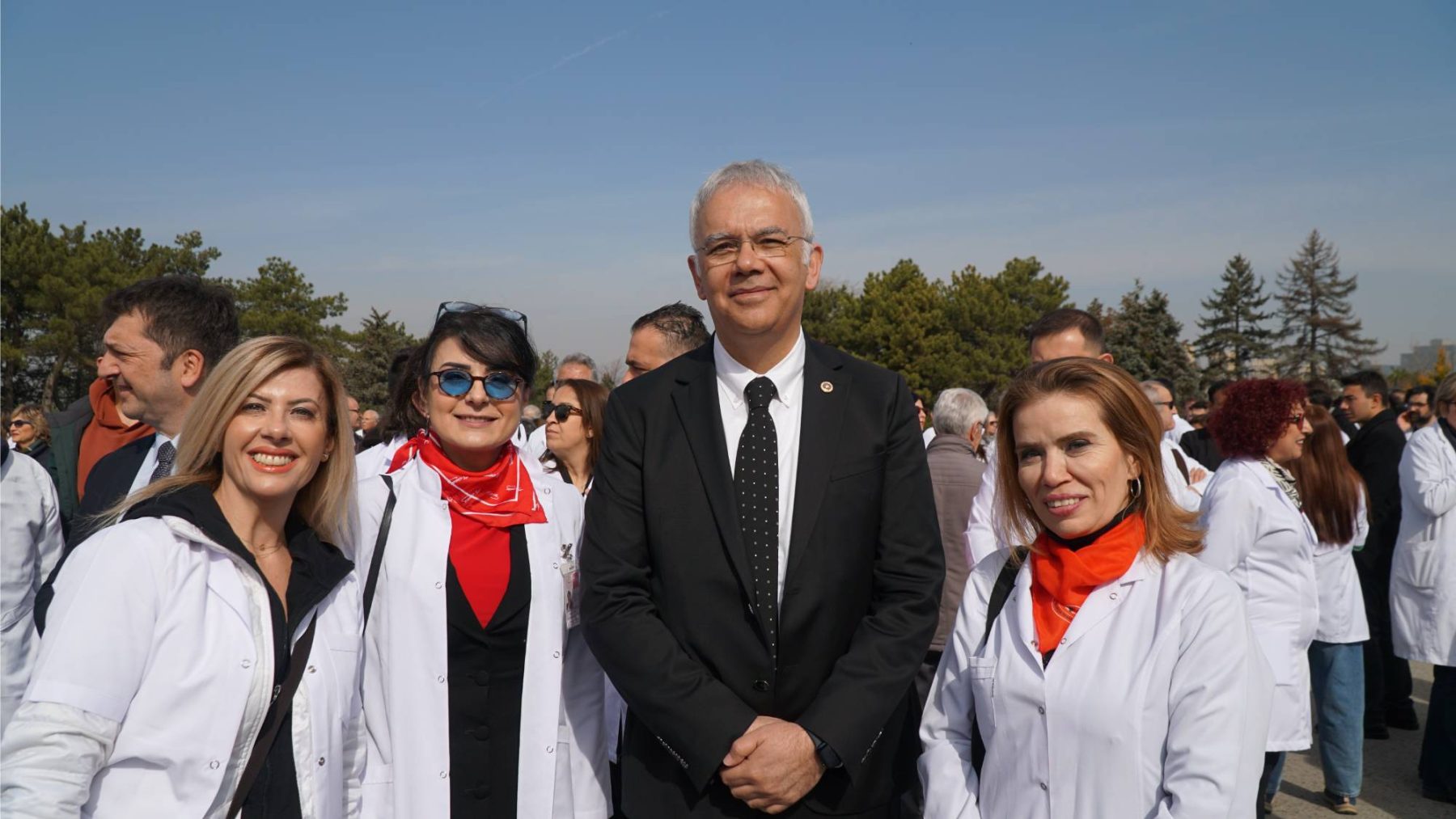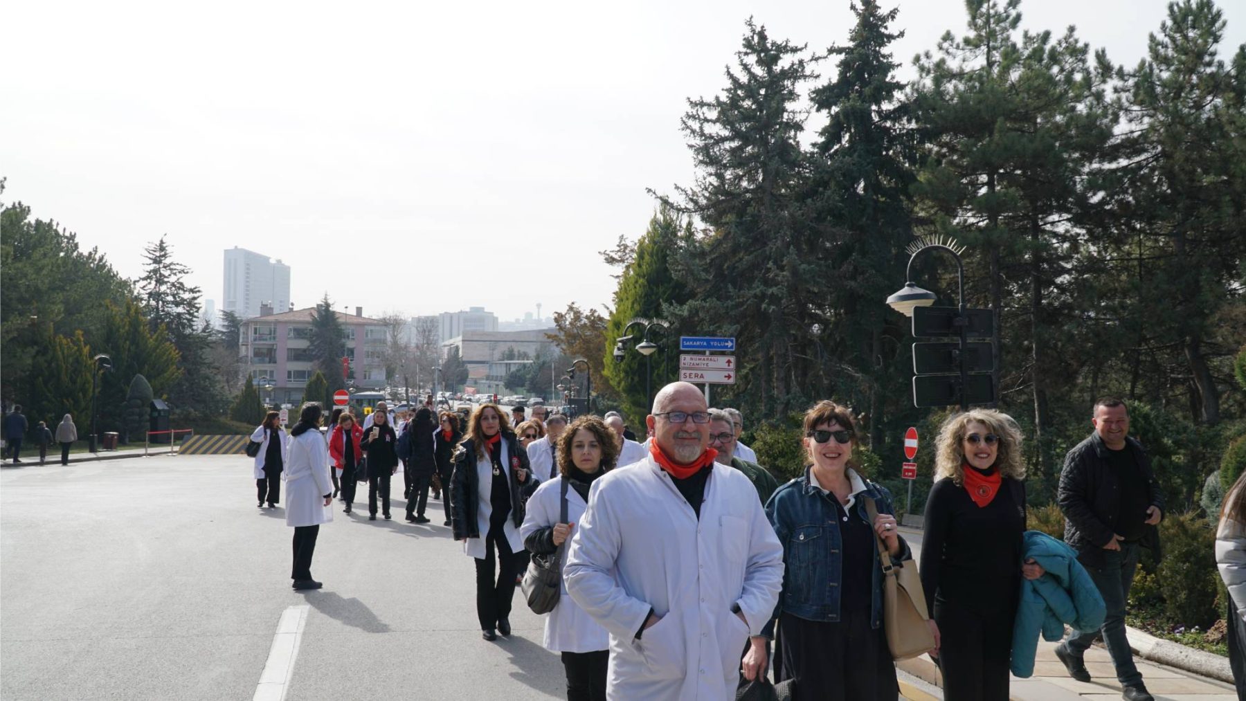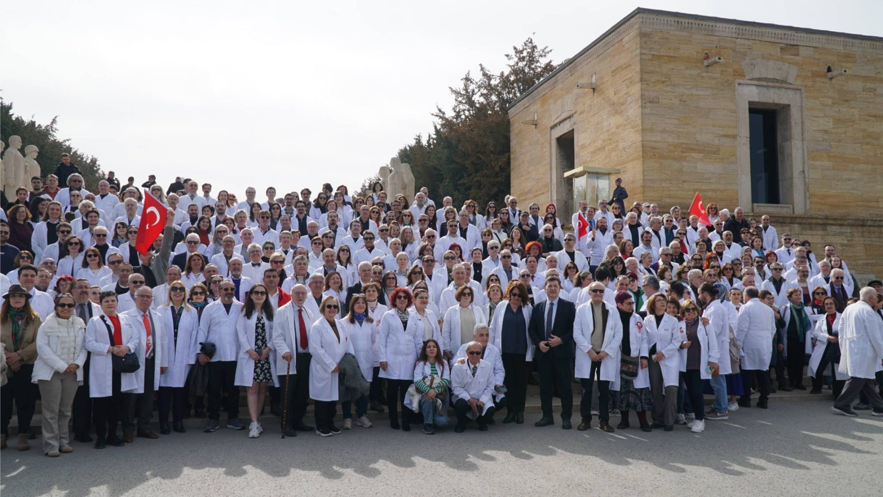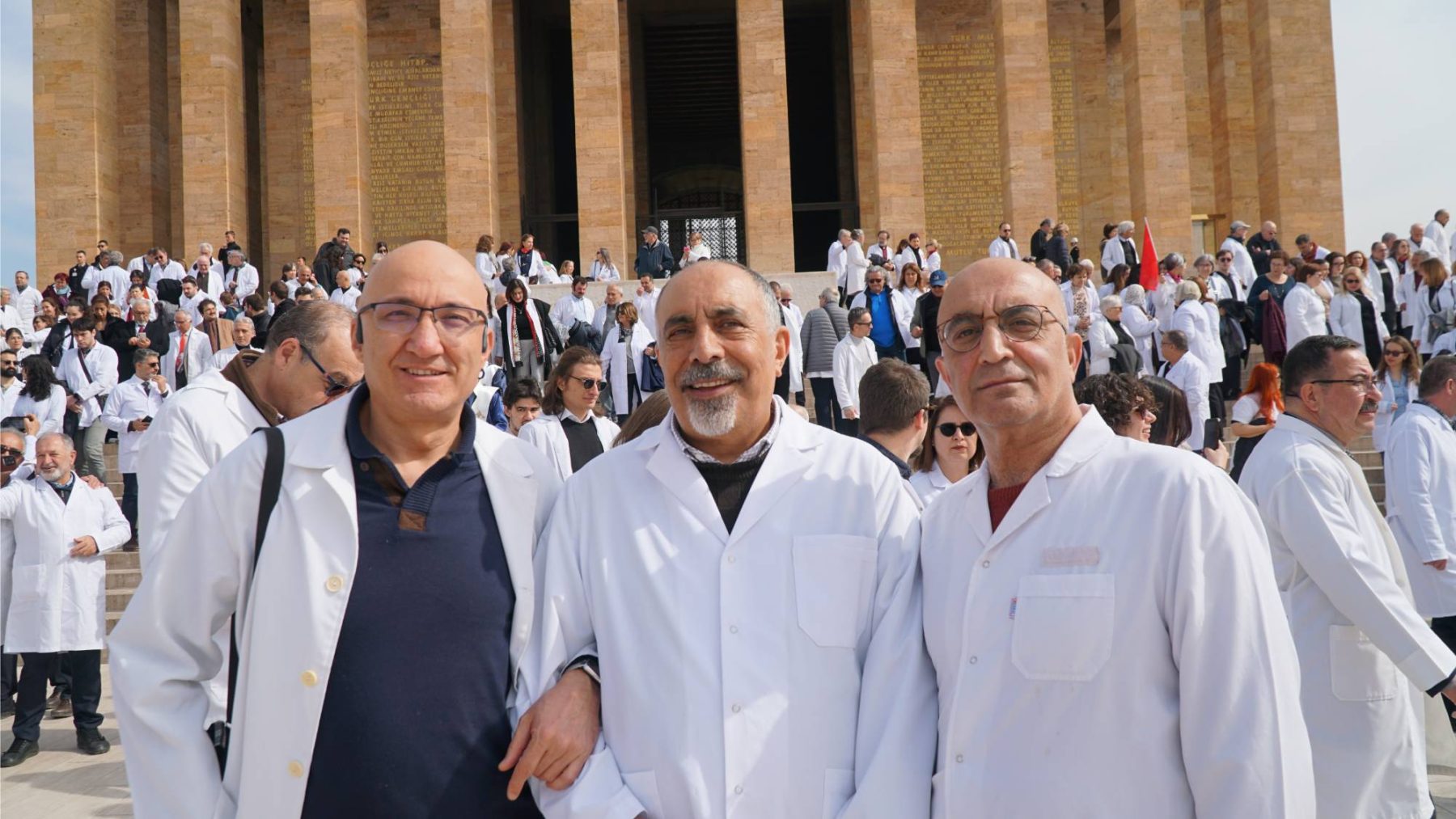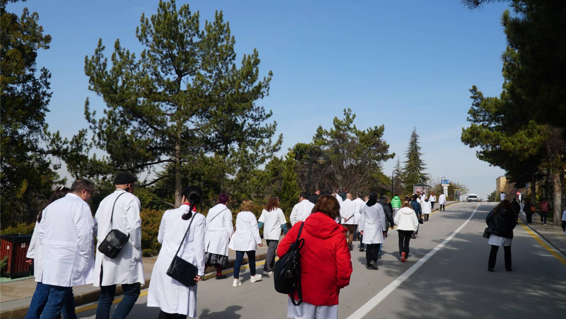 Anıtkabir’deki törenin ardından hekimler, Hacettepe Üniversitesi Tıp Fakültesi önünde bir araya gelerek Abdi İpekçi Parkı’na yürüdü. “İyi hekimlik yapmak istiyoruz” yazılı ana pankartın arkasında tabip odalarının kortejleri sıralandı.