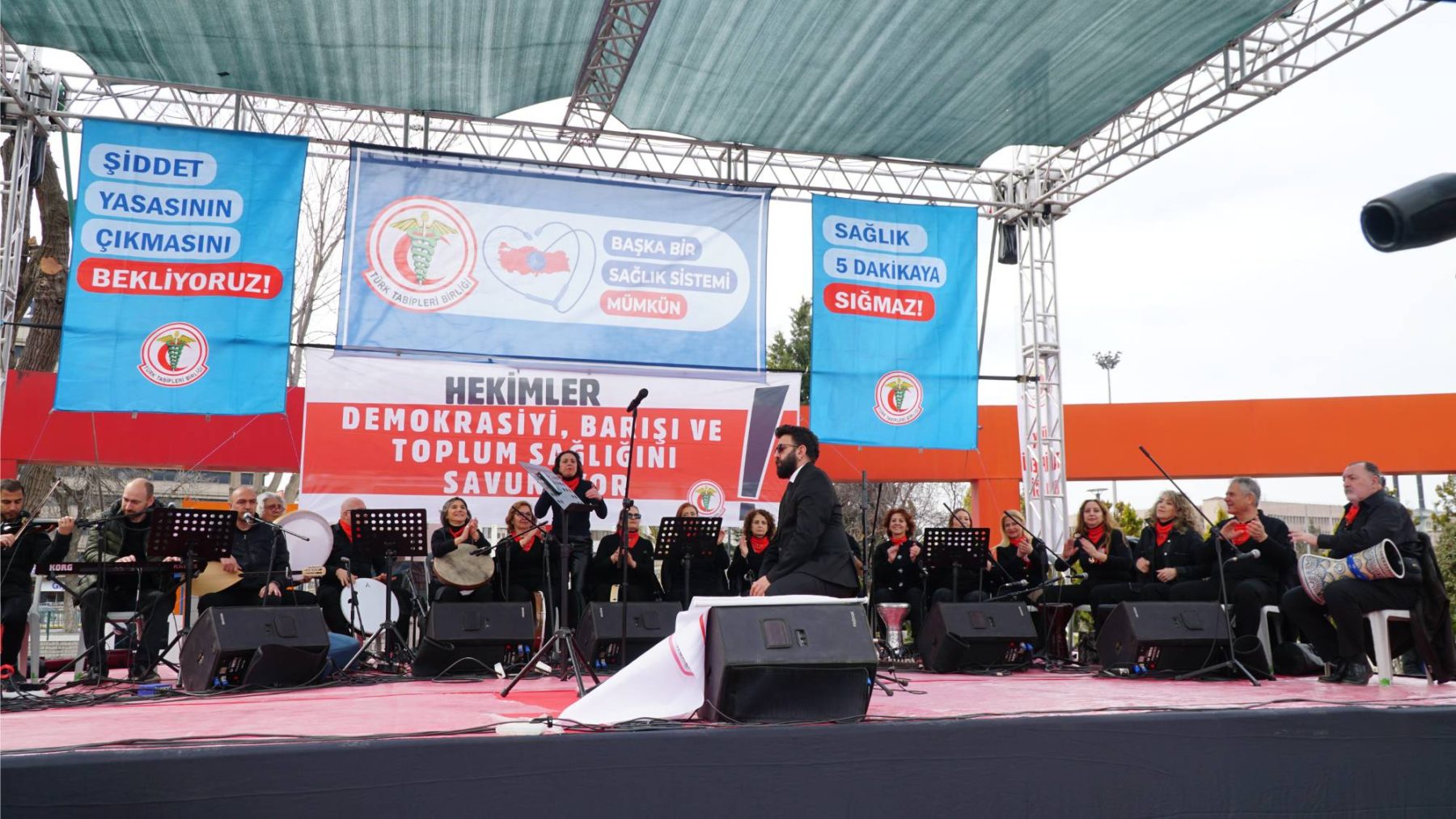“Başka bir sağlık sistemi, başka bir Türkiye mümkündür. Yaşasın hekimlik onuru, yaşasın iyi hekimlik değerleri, yaşasın halkın sağlık hakkı!”