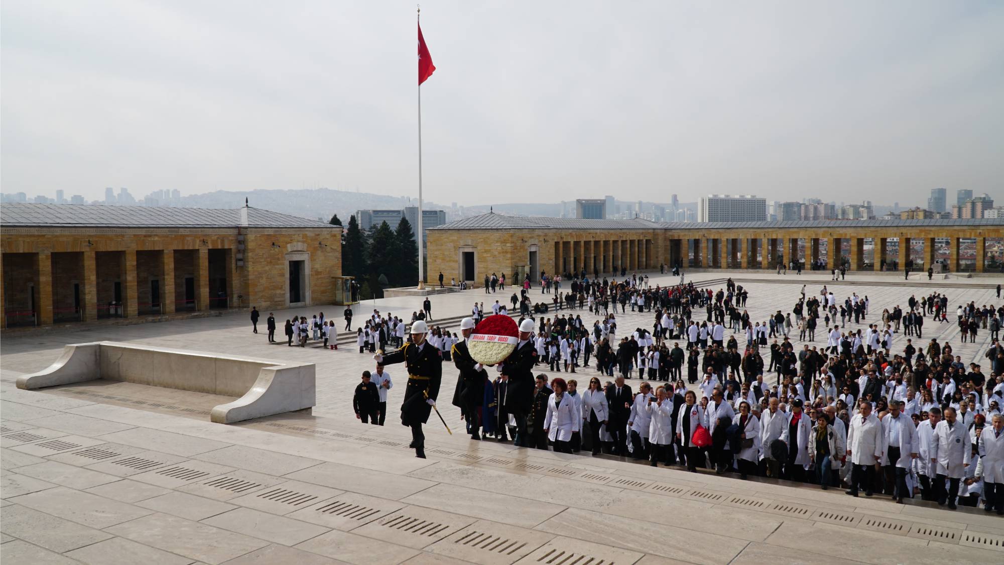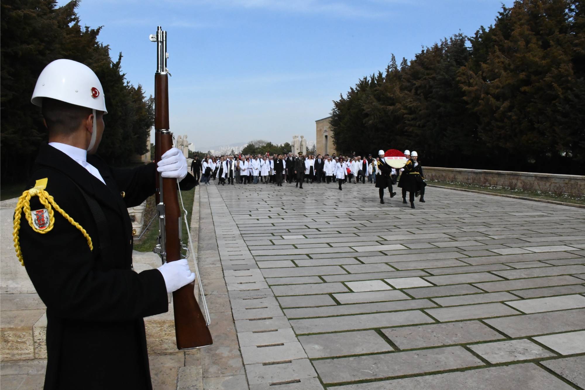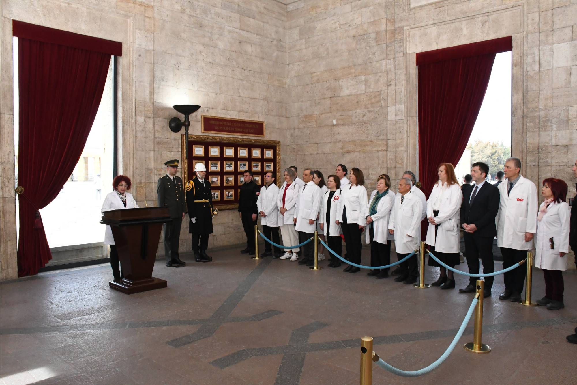 Etkinlikler kapsamında hekimler günün ilk saatlerinde Anıtkabir’de düzenlenen resmi törene katıldı. TTB Merkez Konseyi üyeleri ve çok sayıda tabip odasının temsilcilerinin katıldığı törende, Mustafa Kemal Atatürk’ün mozolesine çelenk bırakıldı. Saygı duruşu ve Anıtkabir özel defterinin imzalanmasının ardından hekimler, 14 Mart Tıp Bayramı’nın tarihsel anlamına ve hekimlik değerlerine vurgu yaptı.