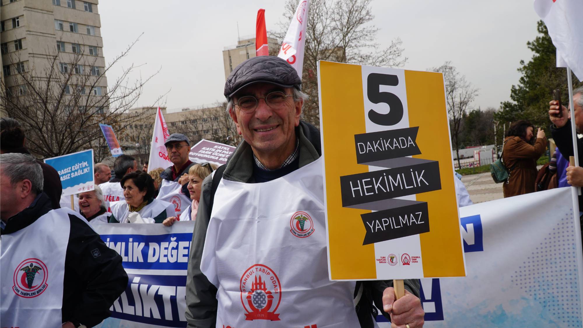 • “Sağlık 5 dakikaya sığmaz” sloganlarıyla taleplerini dile getirdi.