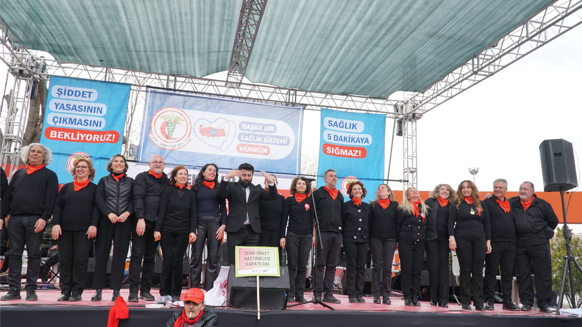 “Başka bir sağlık sistemi, başka bir Türkiye mümkündür. Yaşasın hekimlik onuru, yaşasın iyi hekimlik değerleri, yaşasın halkın sağlık hakkı!”