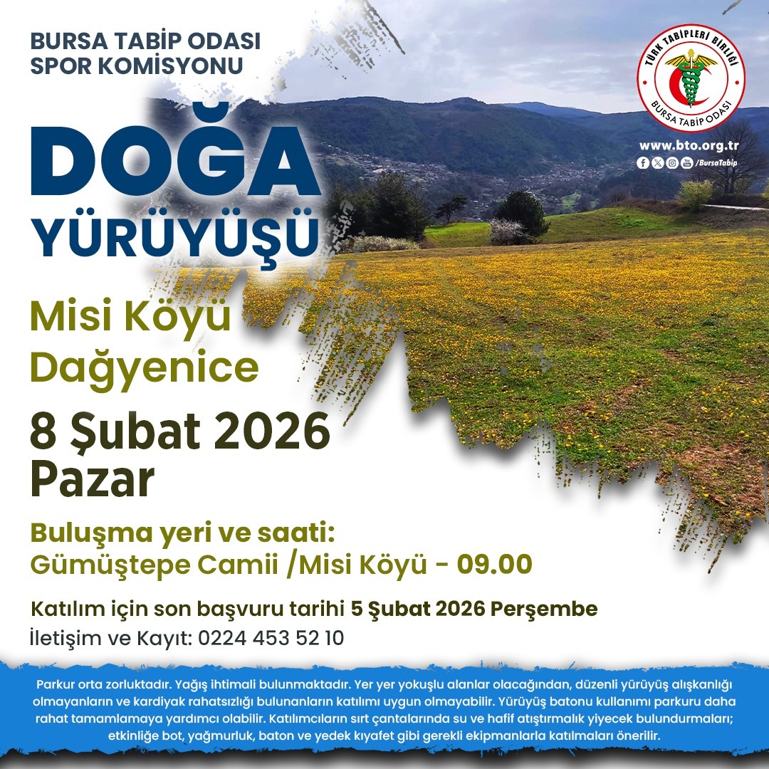 Bursa Tabip Odası Spor Komisyonu tarafından düzenlenen doğa yürüyüşümüzde bu kez rotamız Misi Köyü – Dağyenice!