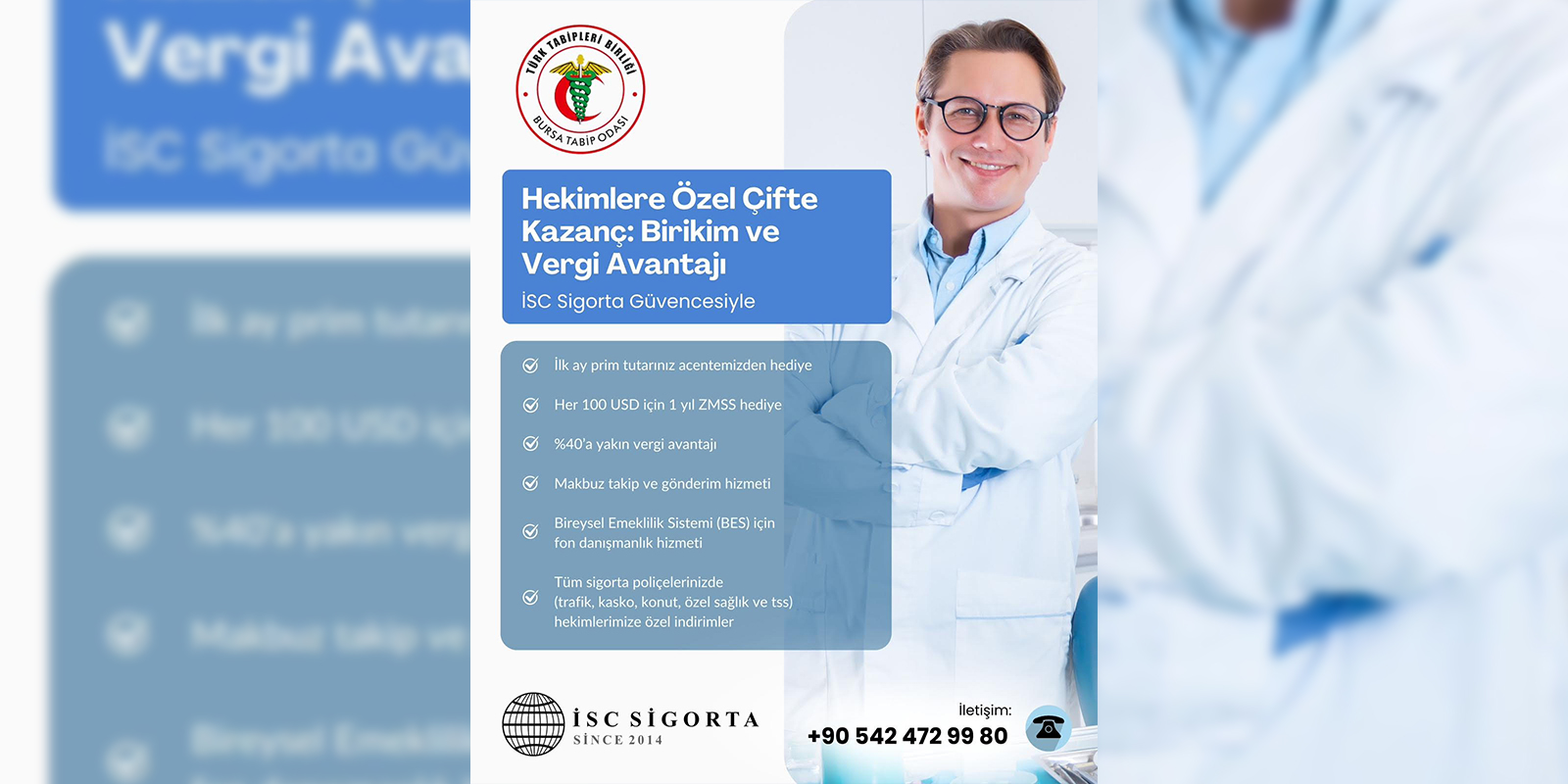Bursa Tabip Odası üyelerine özel olarak, İSC Sigorta güvencesiyle birikim yaparken vergi avantajlarından yararlanma imkânı sunuluyor.