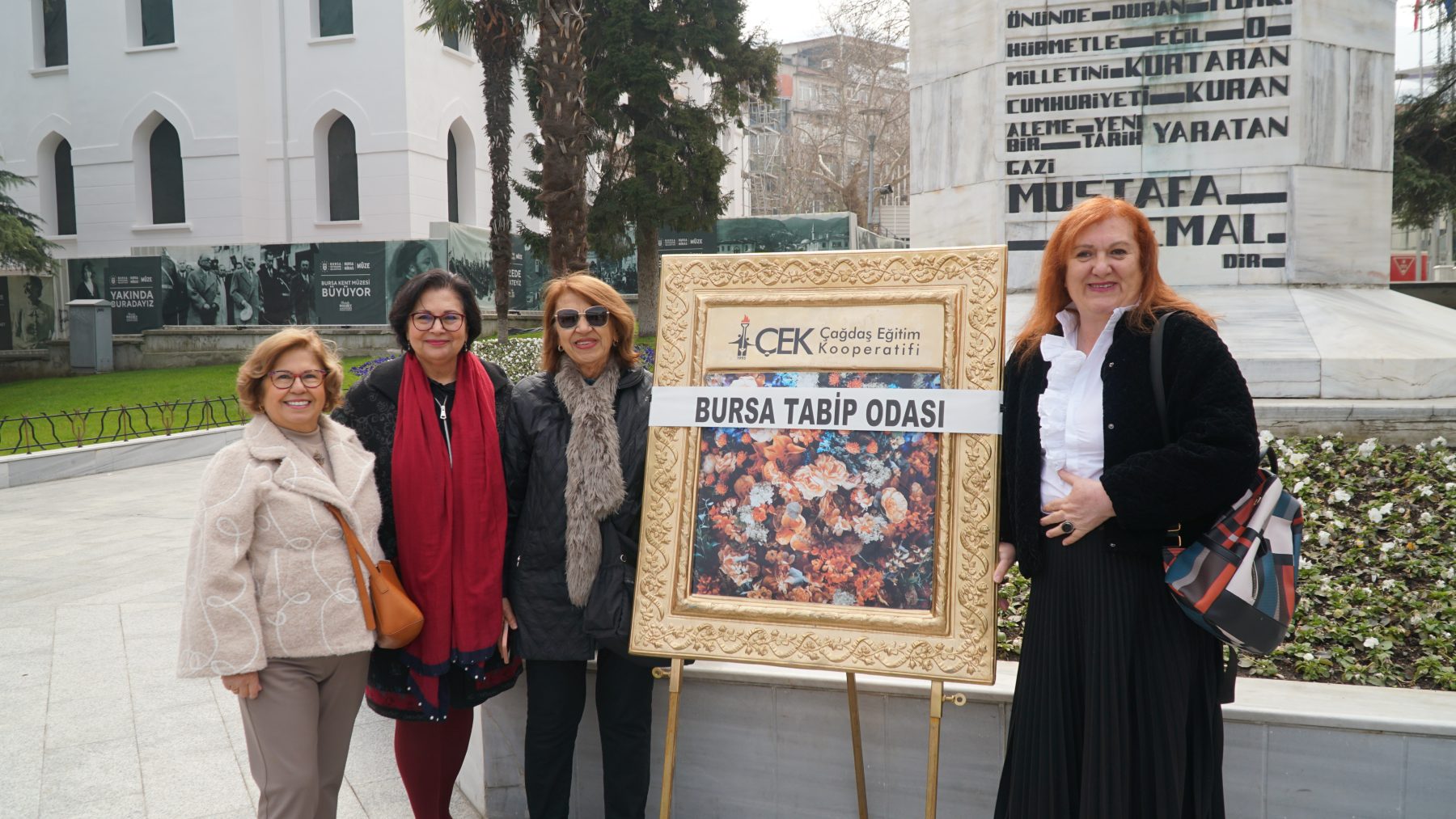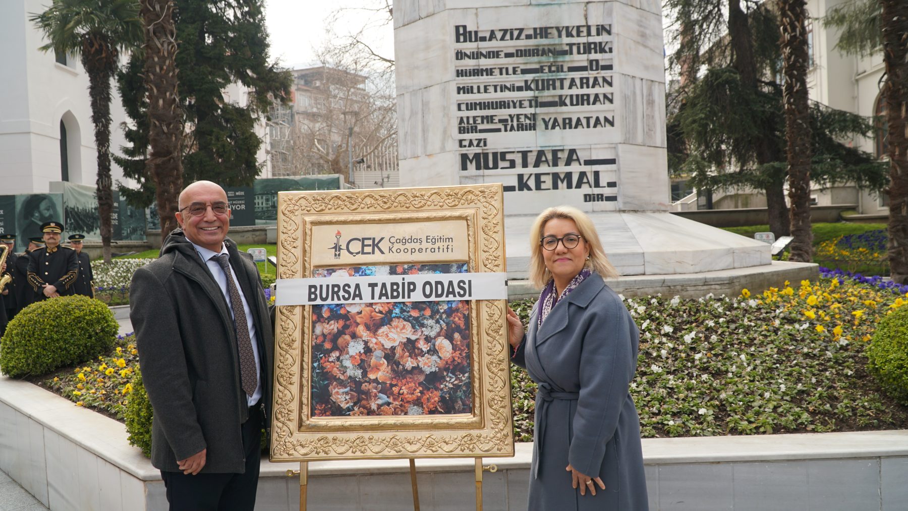 Saygı duruşu ve İstiklal Marşı’nın okunmasının ardından BTO Başkanı Dr. Kadir Binbaş ve Bursa Uludağ Üniversitesi Tıp Fakültesi Dekanı Prof. Dr. Necmiye Funda Coşkun, Atatürk Anıtı’na çelenk bıraktılar.