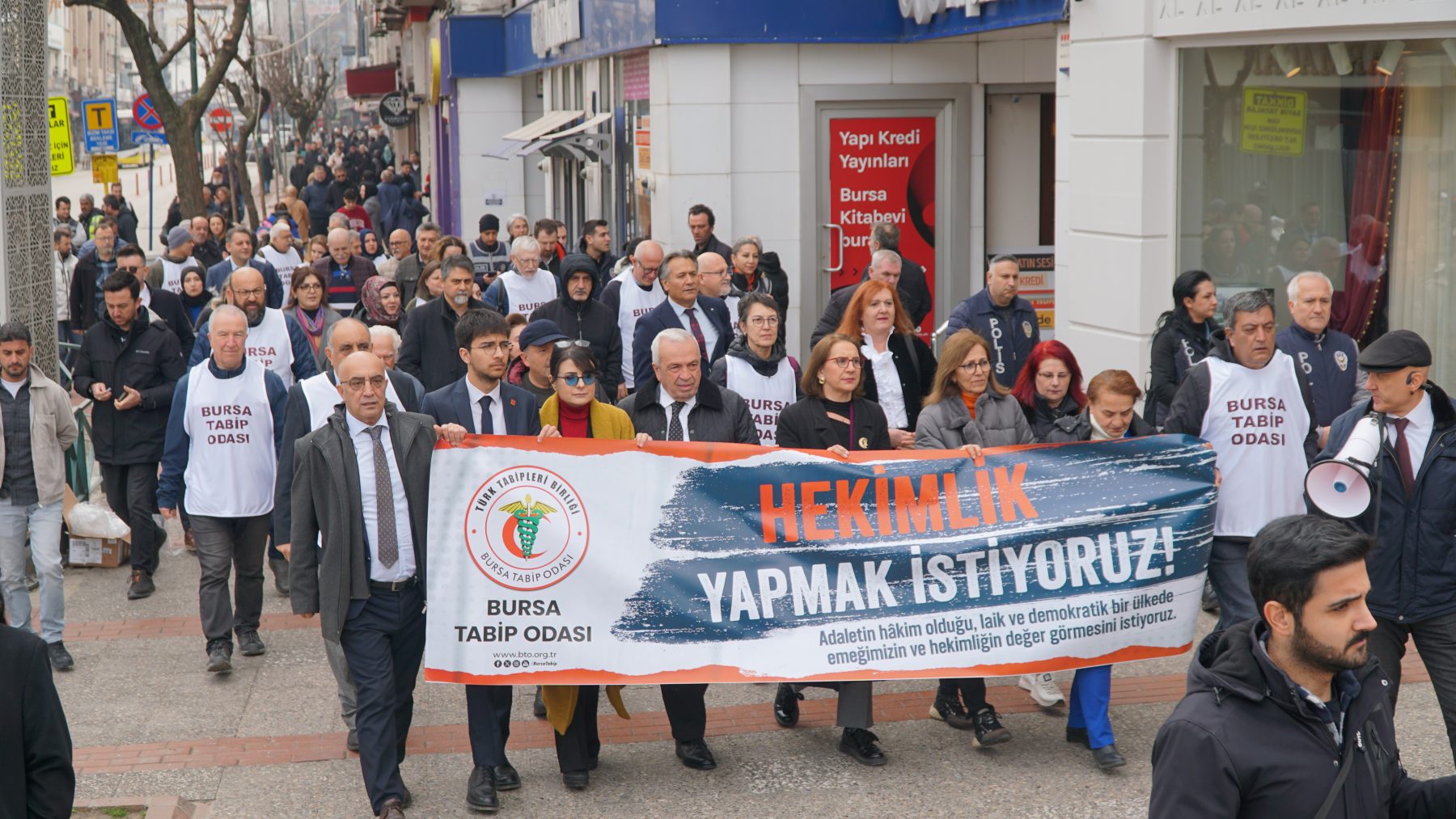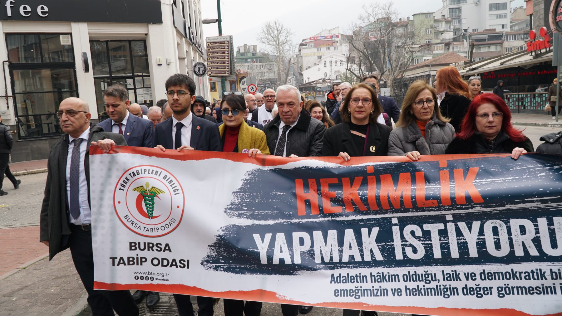 Sağlık Hakkı Yürüyüşüne, BTO Başkanı Dr. Kadir Binbaş, BTO Genel Sekteri Dr. Muhsin Güllü, BTO Yönetim Kurulu Üyelerinden Dr. Ferda Firdin, Dr. Deniz Alpan, Dr. Kenan Ergus, Dr. Ertuğrul Mehmetoğlu, TTB Merkez Konseyi üyesi Dr. Güzide Elitez, Nilüfer Belediye Başkanı Şadi Özdemir, sivil toplum örgütleri, sendika temsilcileri ve çok sayıda hekim katıldı.