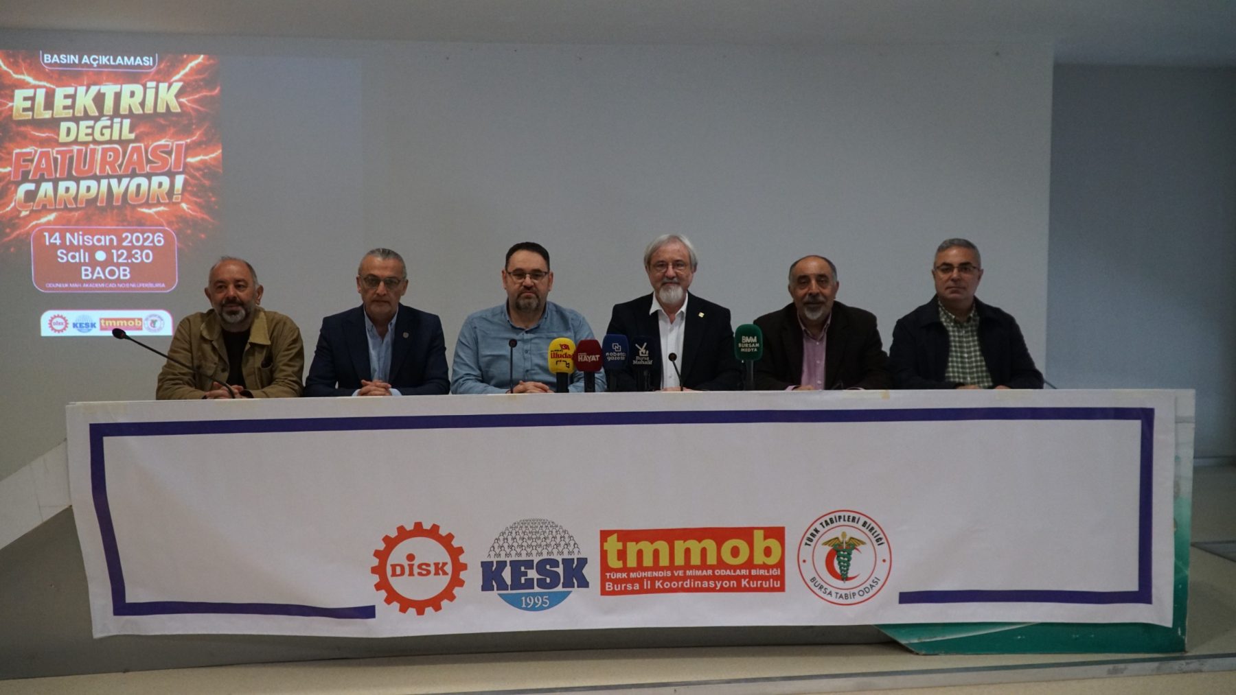 Bursa Tabip Odası, DİSK, KESK ve TMMOB’un çağrısıyla BAOB’da bir araya gelen akademik meslek odaları ve sendikalar, elektrik tarifelerine yapılan yüzde 25’lik zamma ilişkin basın açıklaması gerçekleştirdi.