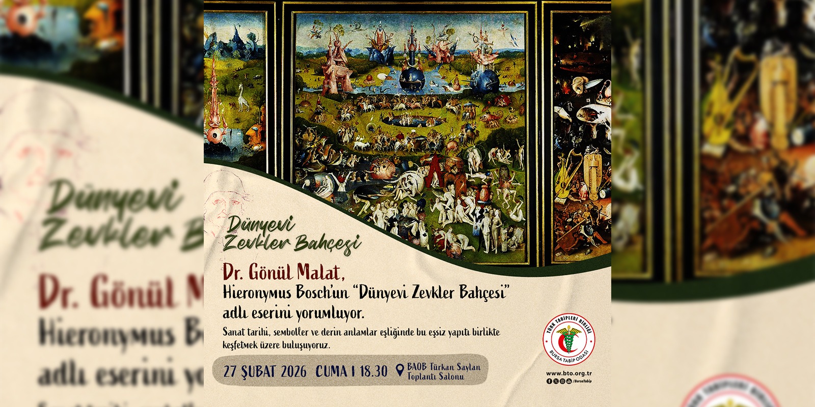 Dr. Gönül Malat, Hieronymus Bosch’un başyapıtı “Dünyevi Zevkler Bahçesi” adlı eserini sanat tarihi ve semboller eşliğinde yorumluyor.