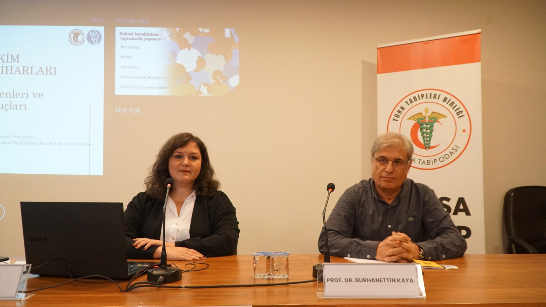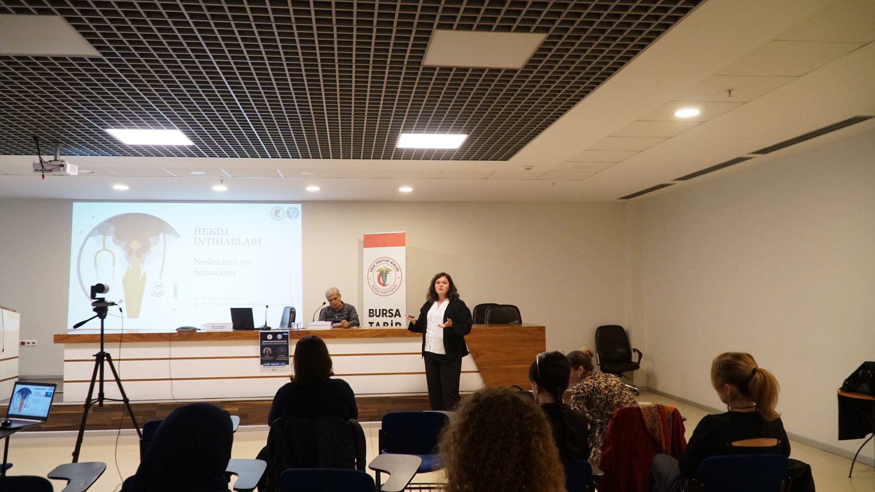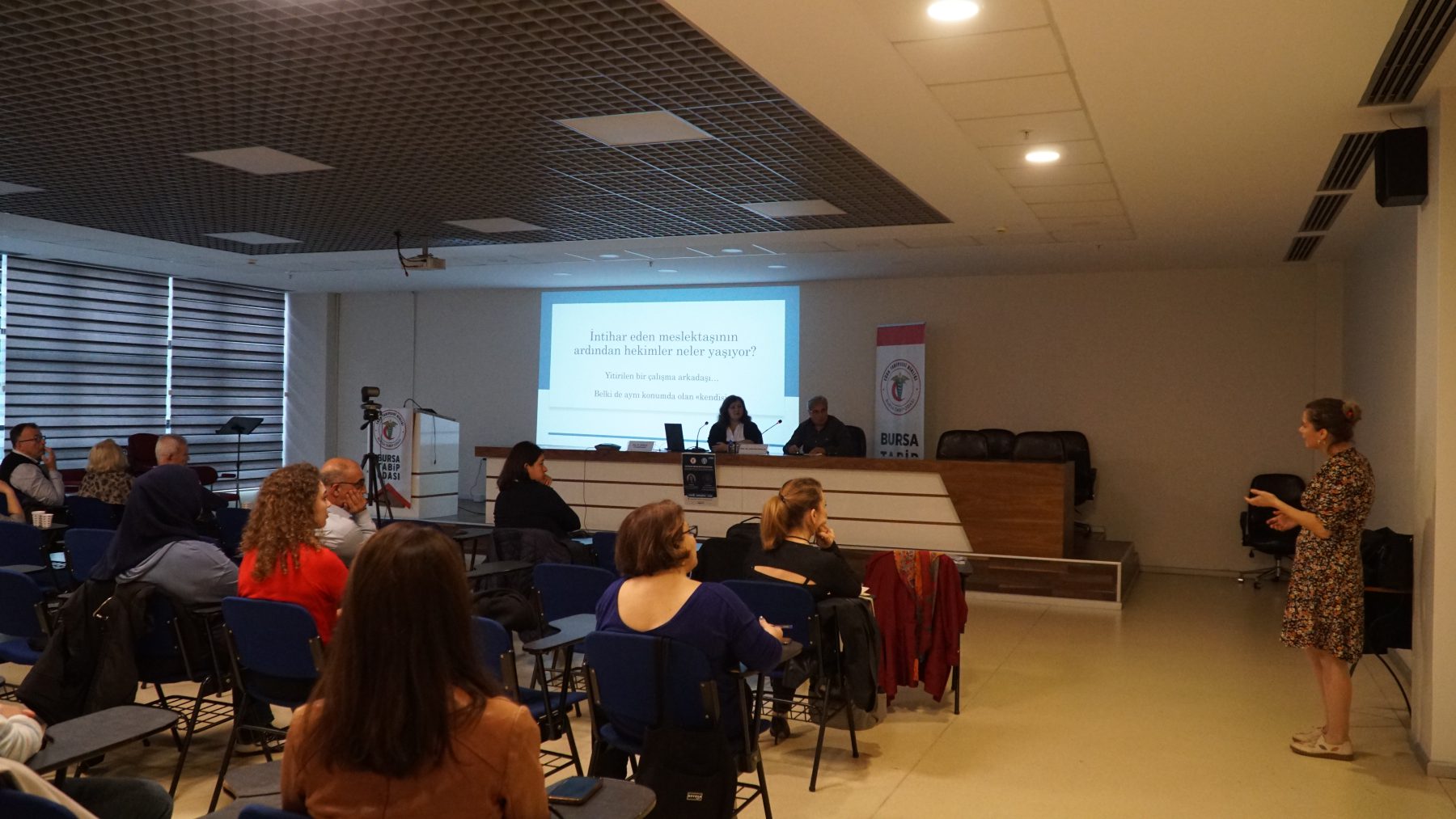 Bursa Tabip Odası ve Türkiye Psikiyatri Derneği Bursa Şubesi tarafından düzenlenen “Hekimler Neden İntihar Ediyor?” başlıklı panel, 1 Kasım 2025 Cumartesi günü BAOB Türkan Saylan Toplantı Salonu’nda gerçekleştirildi.
