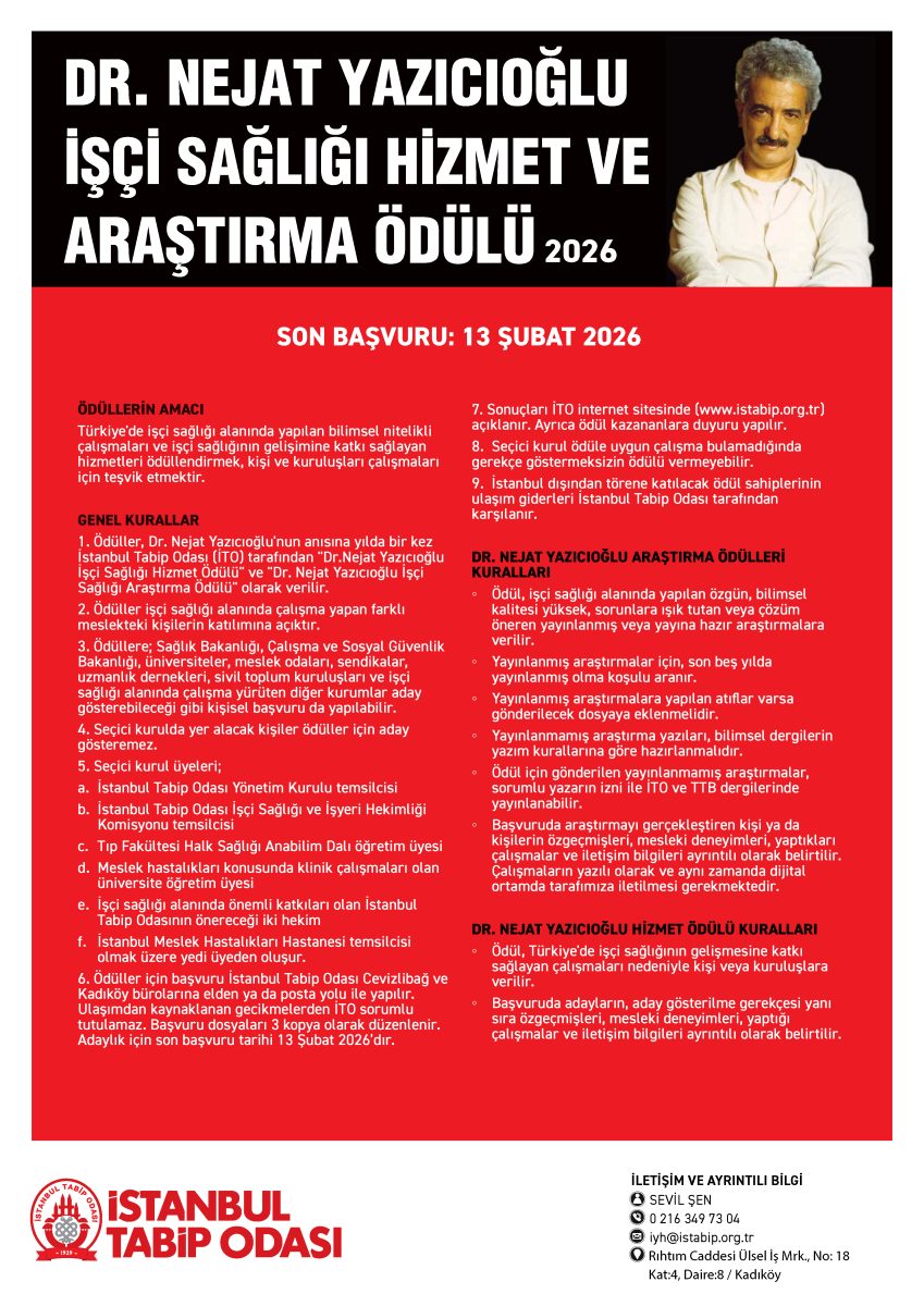 - Ödüller işçi sağlığı alanında çalışma yapan farklı meslekteki kişilerin katılımına açıktır.