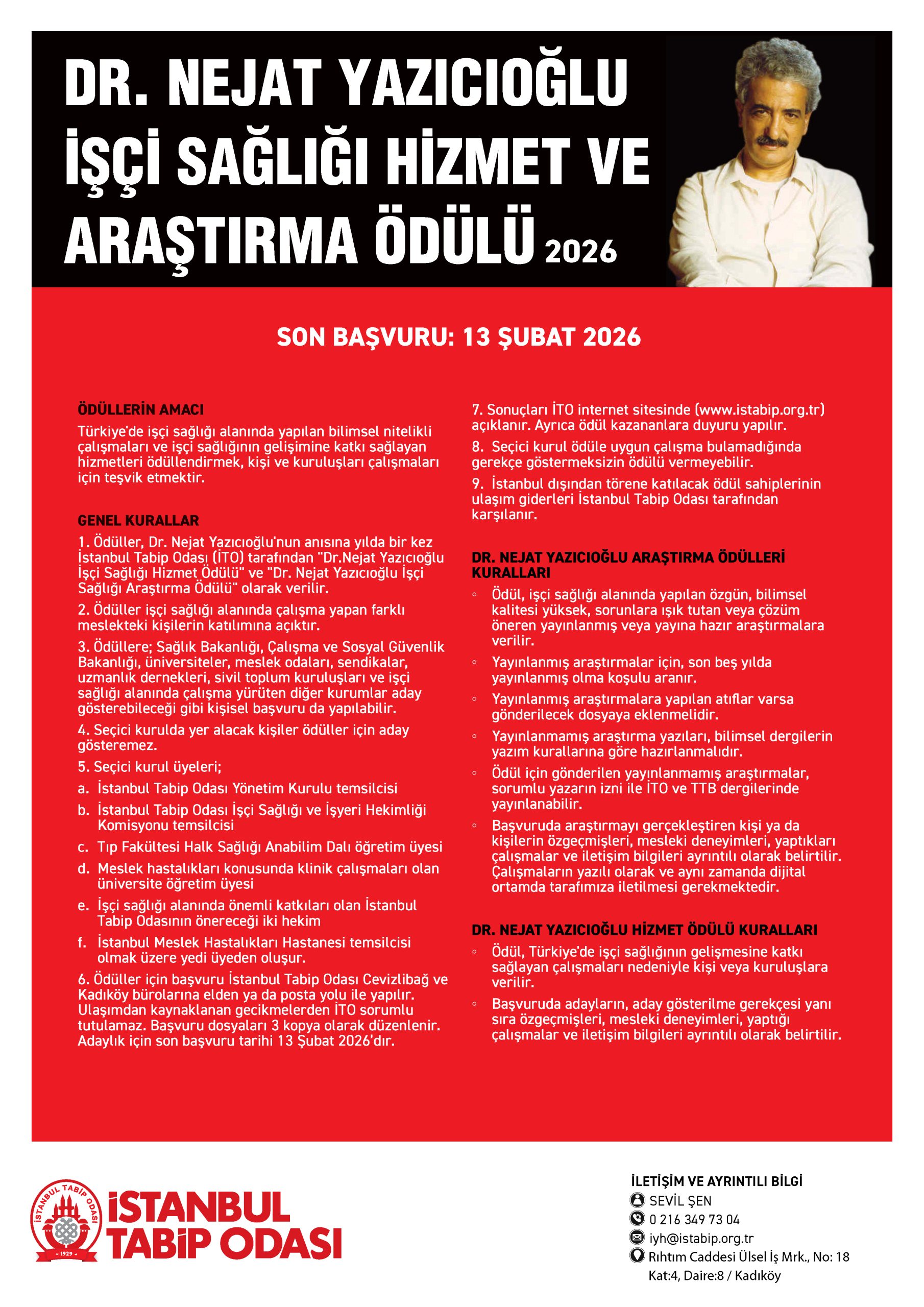İSTANBUL TABİP ODASI 14 MART TIP HAFTASI DR. NEJAT YAZICIOĞLU İŞÇİ SAĞLIĞI HİZMET VE ARAŞTIRMA ÖDÜLLERİ YÖNETMELİĞİ