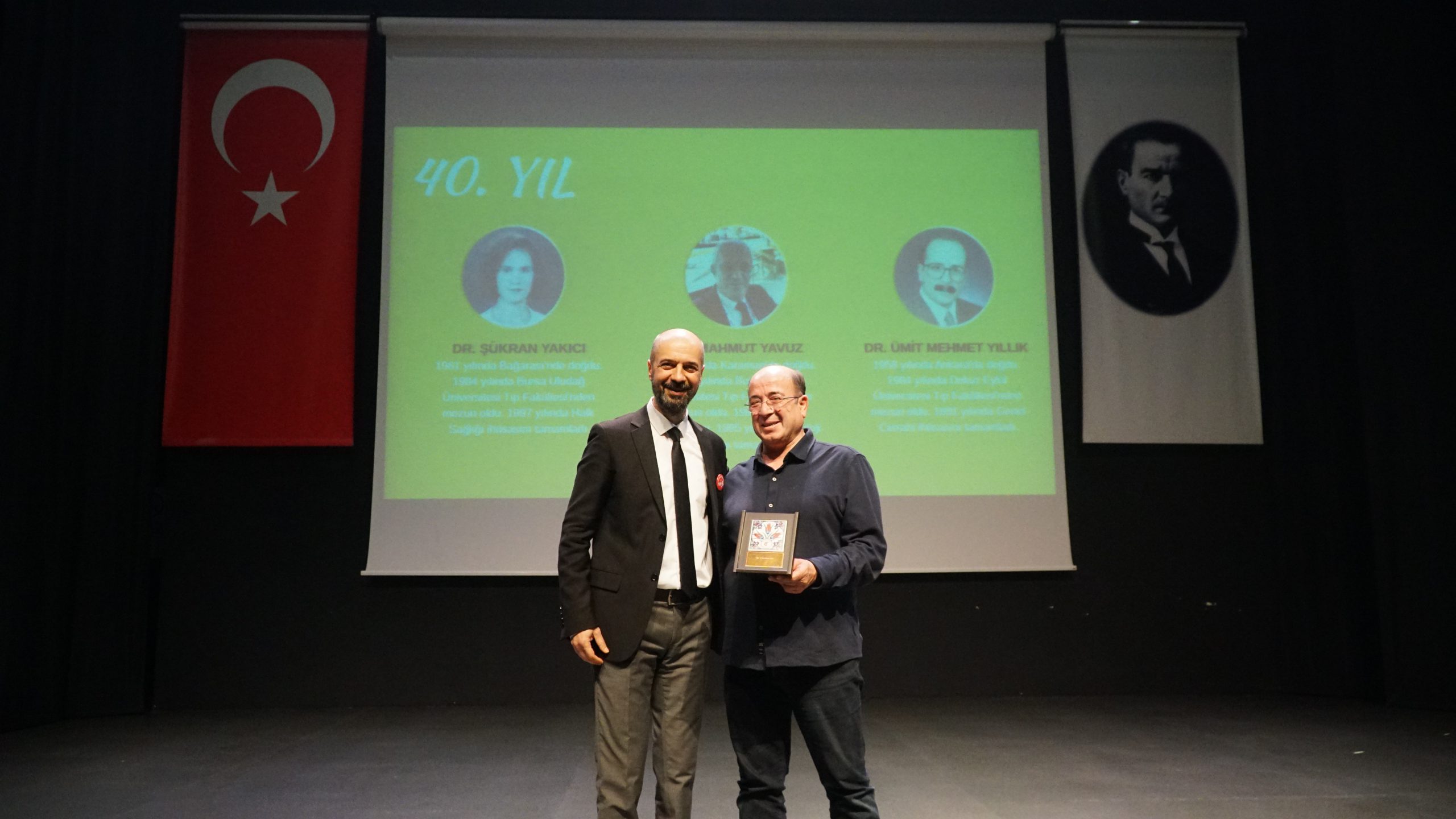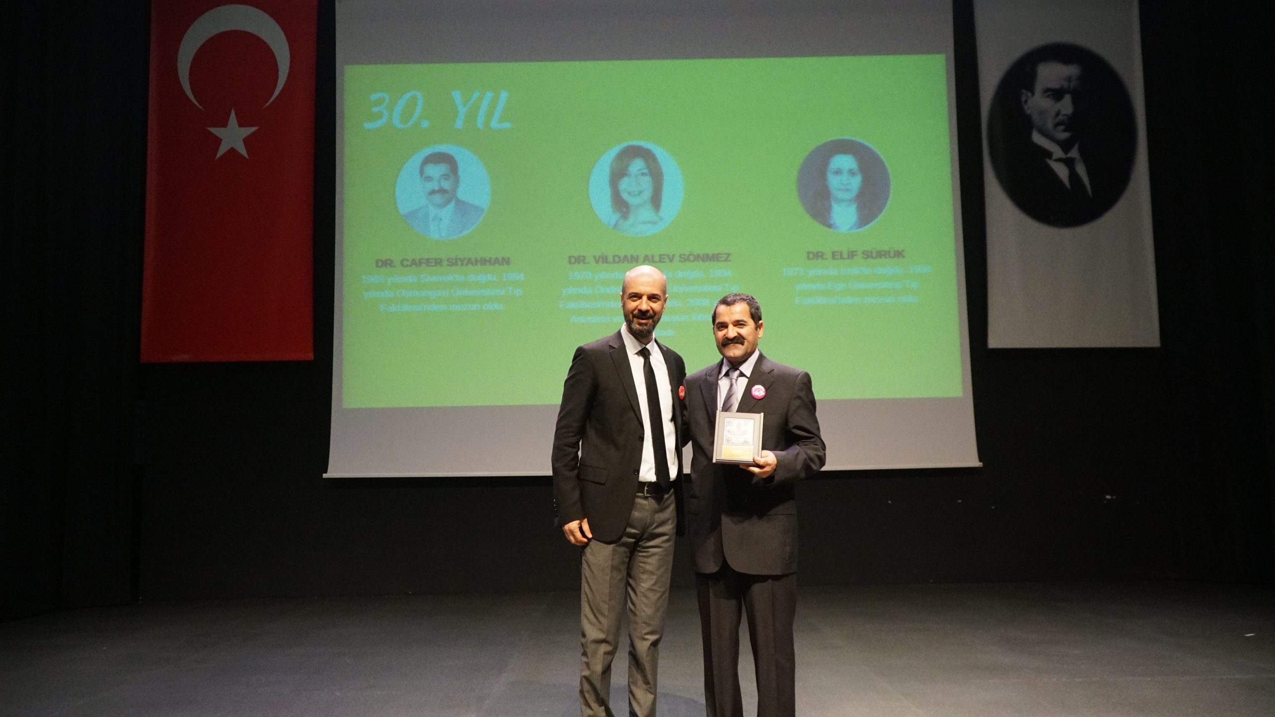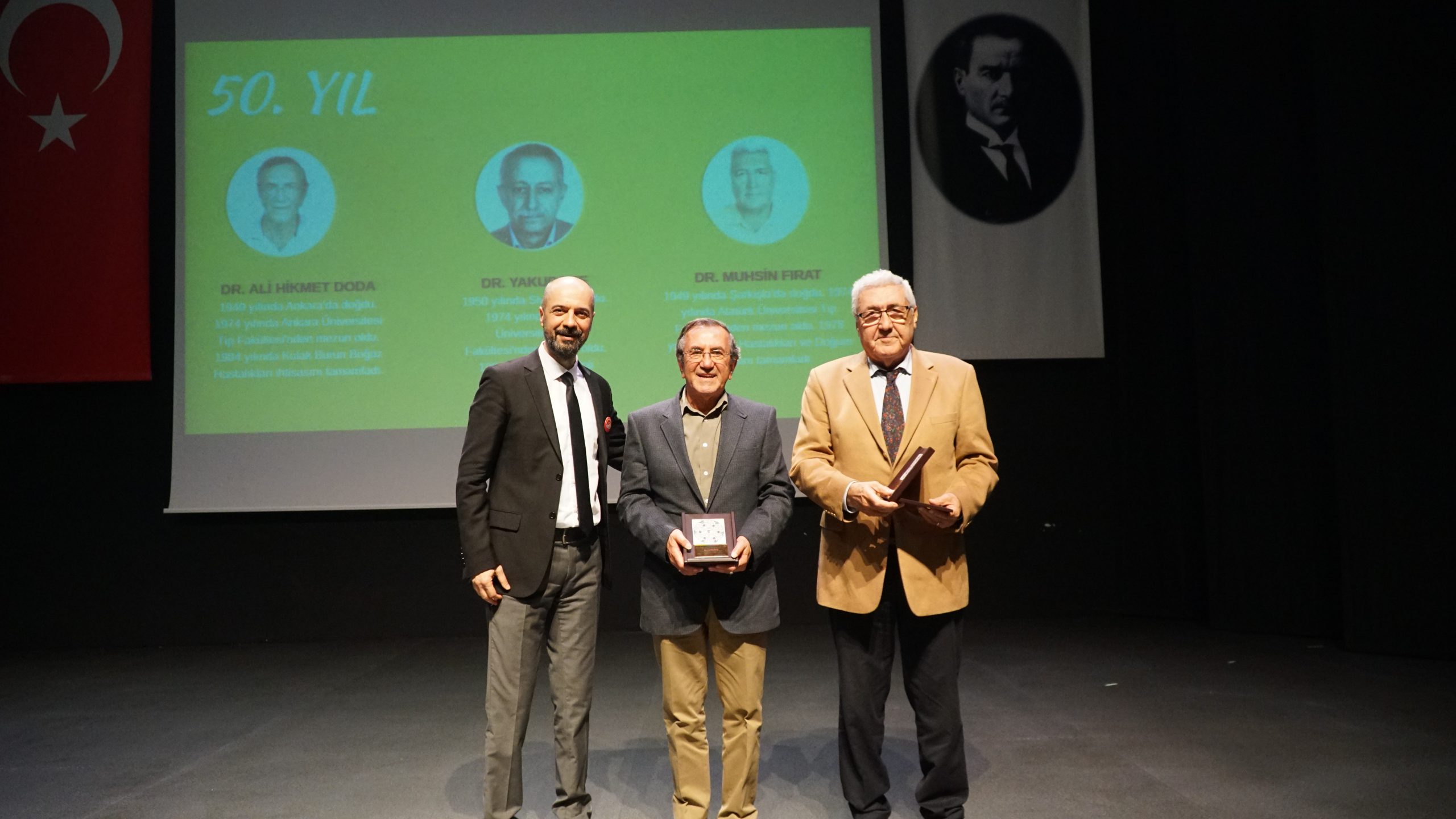 Törende, meslekte 30’uncu, 40’ıncı ve 50’inci, yıllarını dolduran hekimlere plaketleri takdim edildi.