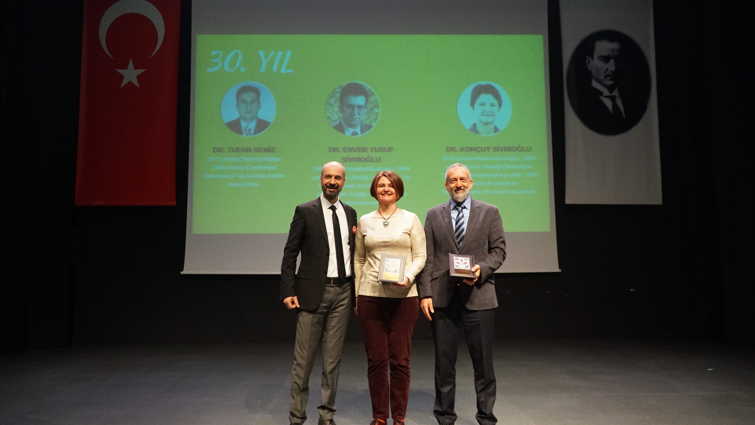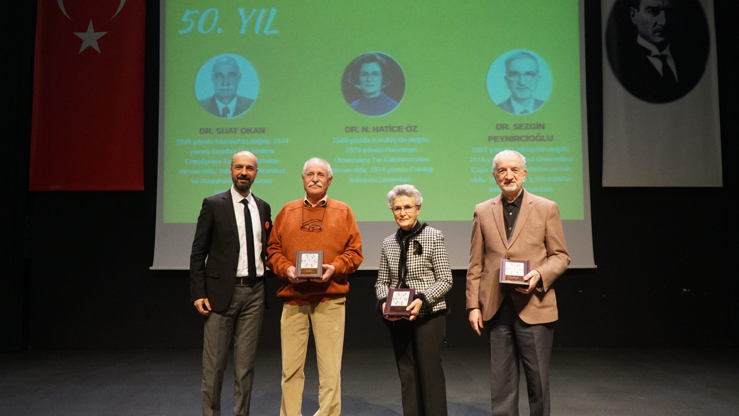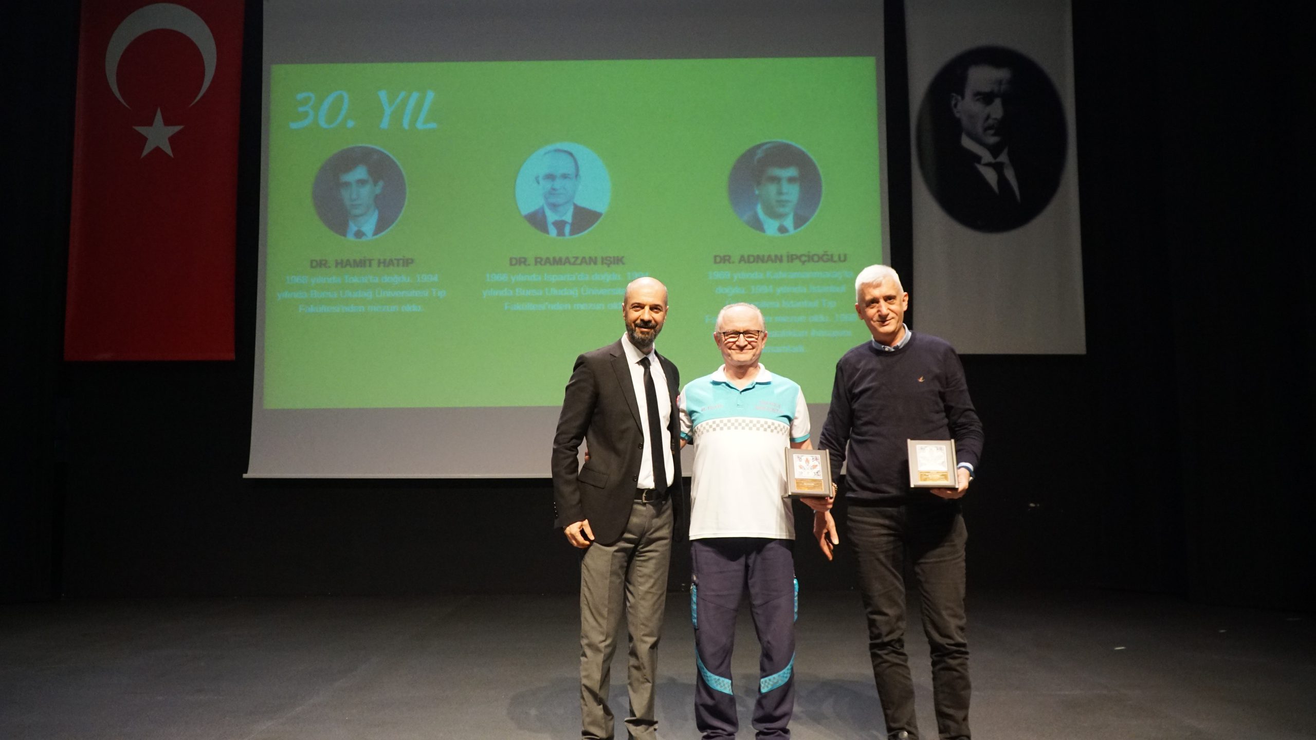 Törende, meslekte 30’uncu, 40’ıncı ve 50’inci, yıllarını dolduran hekimlere plaketleri takdim edildi.