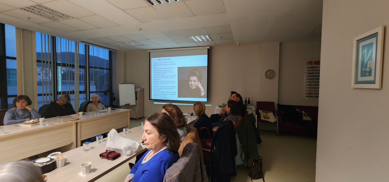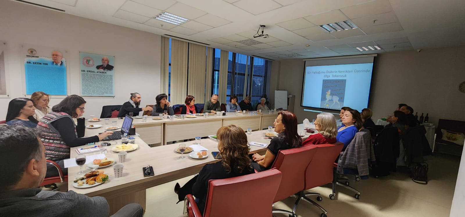 Etkinlik kapsamında bu ay, Nobel Edebiyat Ödüllü yazar Olga Tokarczuk’un “Sür Pulluğunu Ölülerin Kemikleri Üzerinde” adlı kitabı ile Agnieszka Holland’ın yönettiği “İz (Pokot, 2017)” filmi birlikte ele alındı. Katılımcılar, edebiyat ve sinemanın kesişiminde; doğa, adalet, vicdan ve etik temaları üzerine derinlemesine bir tartışma yürüttü.