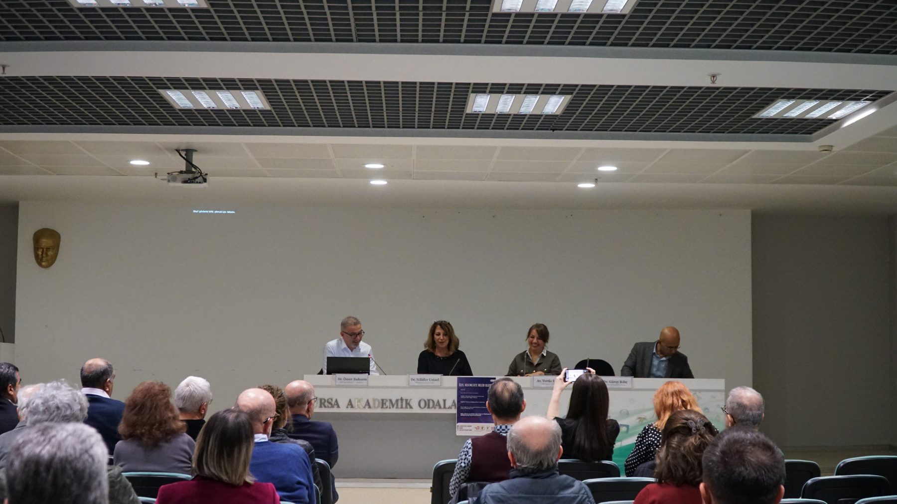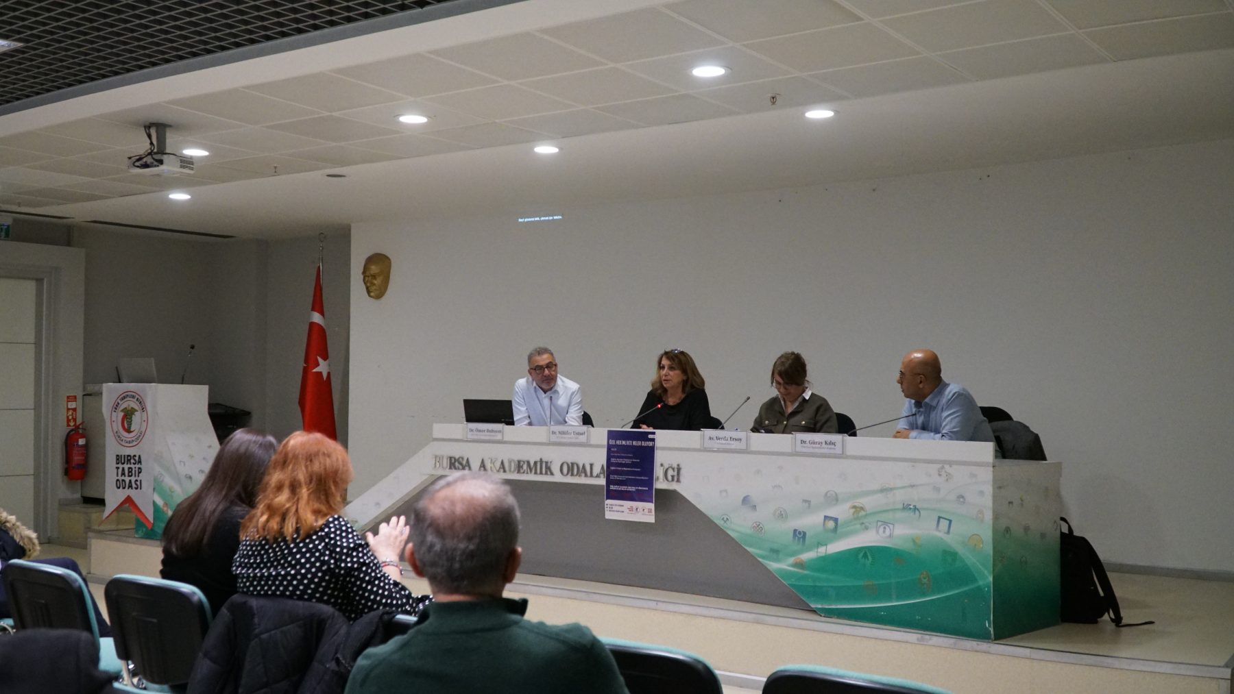 Etkinlik, Bursa Tabip Odası Yönetim Kurulu Başkanı Dr. Kadir Binbaş ile Türk Tabipleri Birliği Merkez Konsey Üyesi Dr. Güzide Elitez’in açılış konuşmalarıyla başladı.