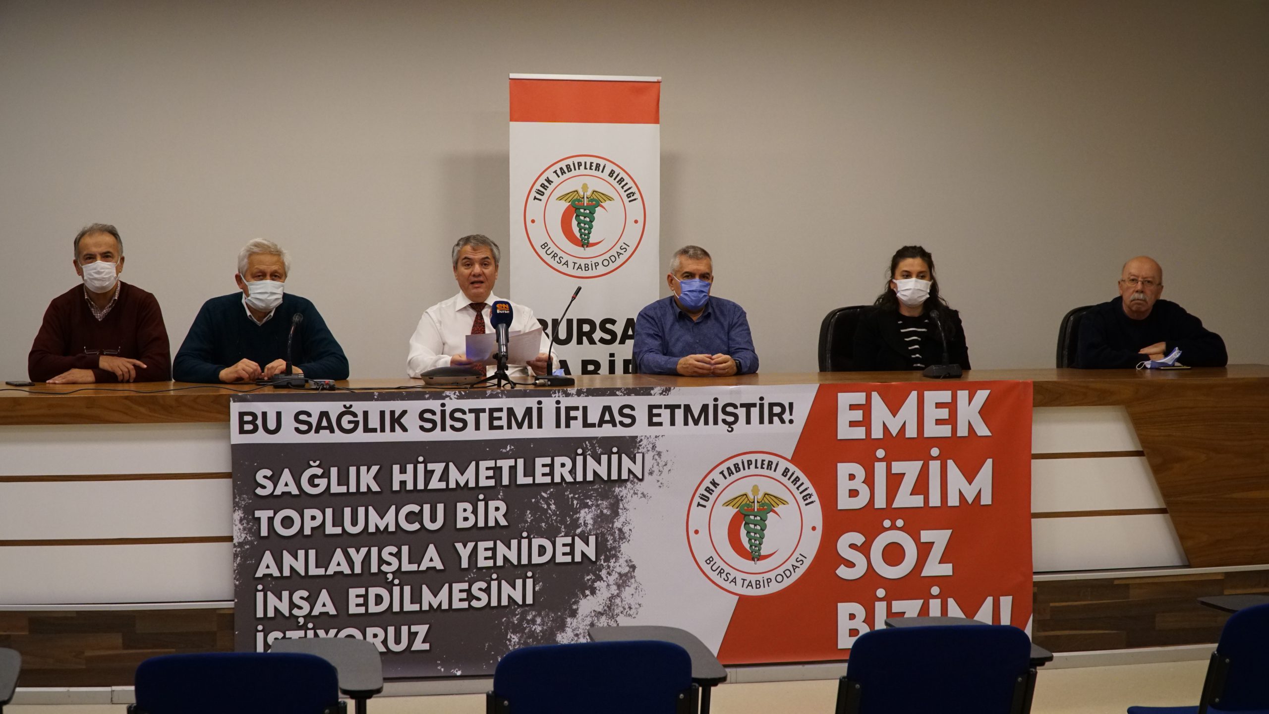 Bursa Tabip Odası, ‘Emek Bizim, Söz Bizim’ sloganıyla başlatılan mücadele sürecinde bir basın açıklaması gerçekleştirdi. BTO Başkanı Doç. Dr. Alpaslan Türkkan, yaptığı açıklamada verdikleri mücadelenin tüm hekim meslektaşları için olduğu kadar halk sağlığı için de önemli olduğunu vurguladı.