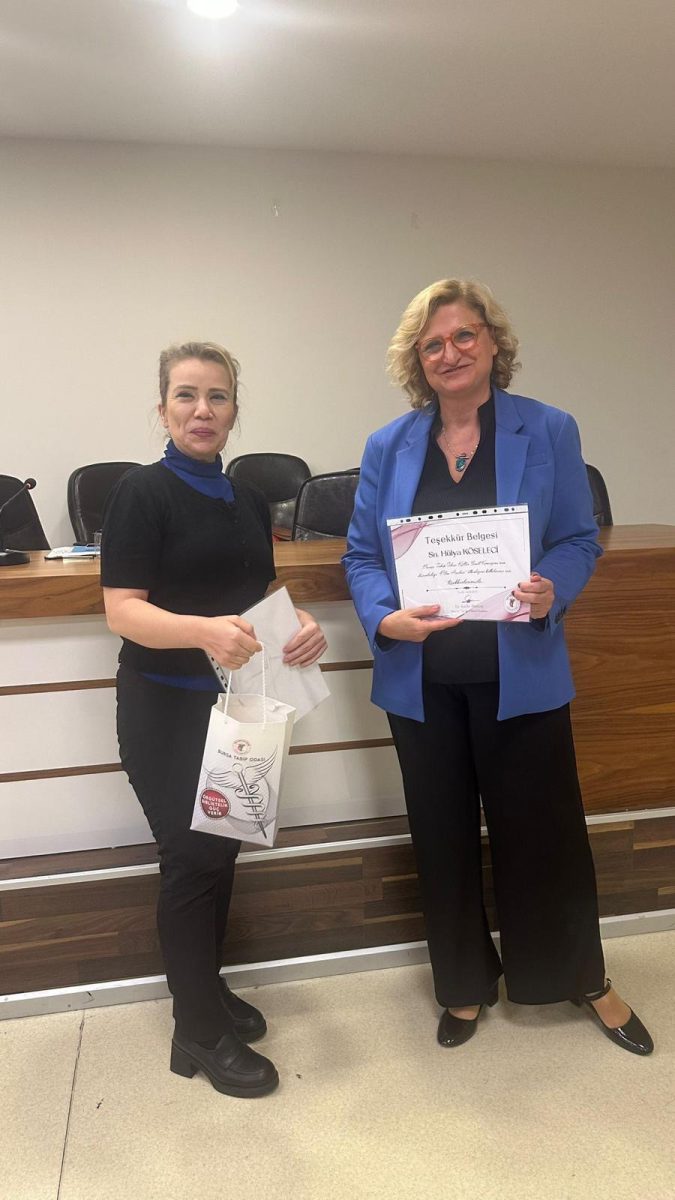 Etkinlik sonunda, Bursa Tabip Odası Yönetim Kurulu Üyesi Dr. Deniz Alpan, Hülya Köseleci ve Dr. Ferda Firdin’e teşekkür belgelerini takdim etti.