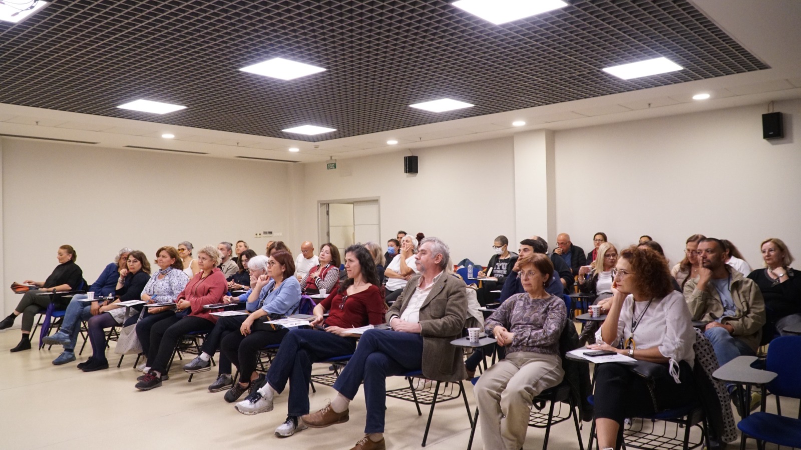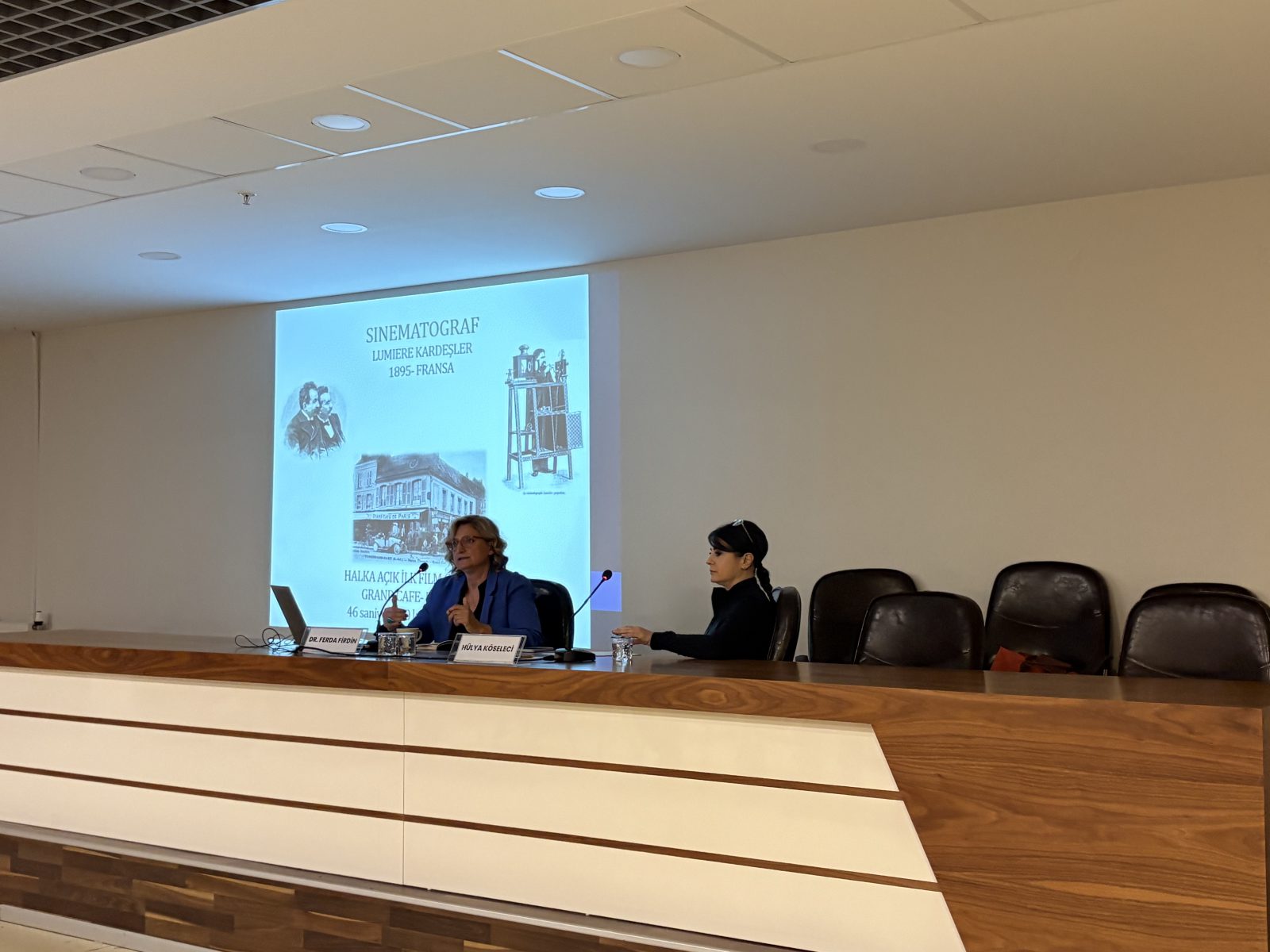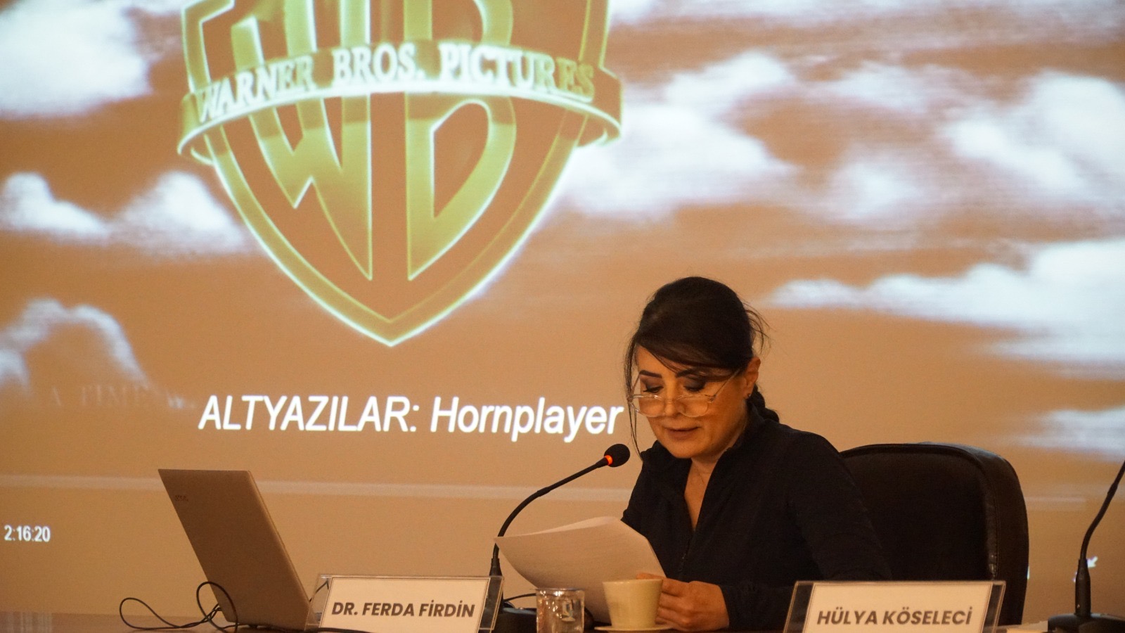 Etkinlik, saat 18.00’de Hülya Köseleci’nin “Hollywood Sinema Kuramı” başlıklı sunumuyla başladı. Hülya Köseleci, sinema sanatının düşünsel, tarihsel altyapısına değinerek Hollywood sinemasının anlatı yapısı ve ideolojik temelleri üzerine bilgiler aktardı.
