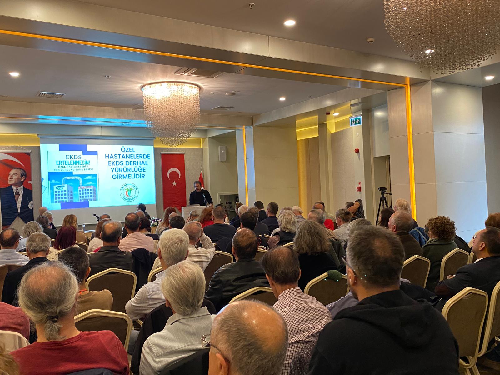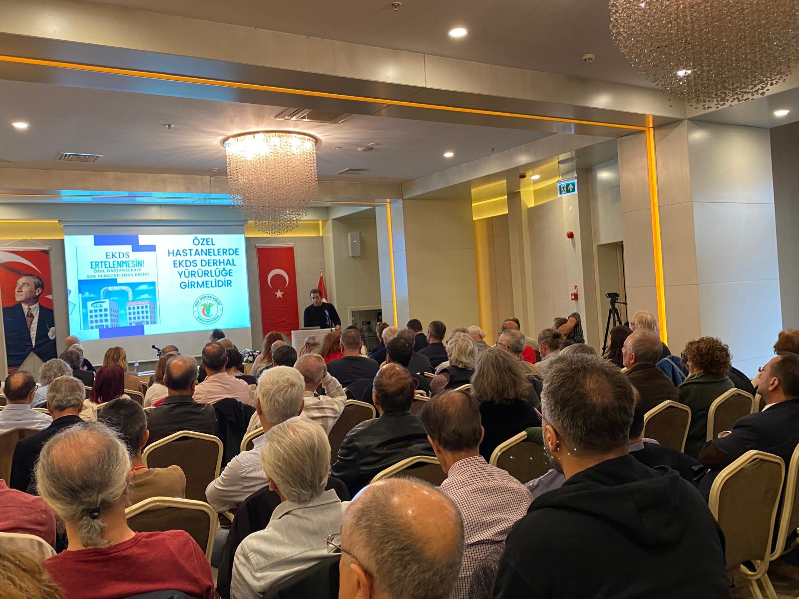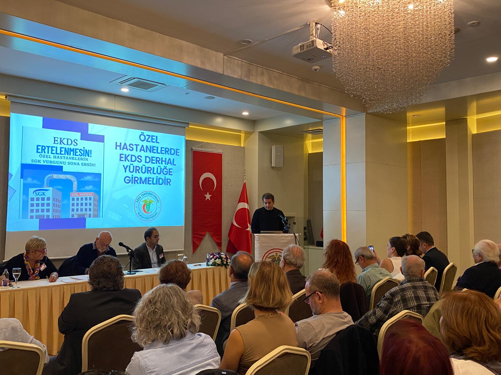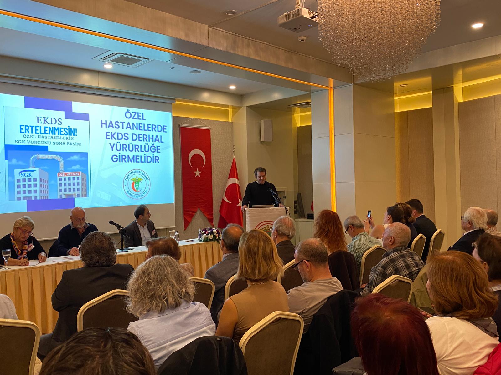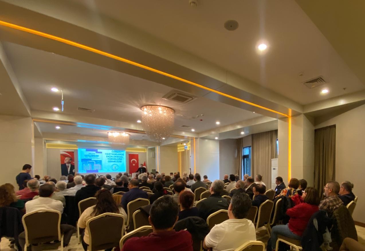 Bursa Tabip Odası Genel Sekreteri Dr. Muhsin Güllü, toplantı kapsamında “Özel Hastanelerde Elektronik Kimlik Doğrulama Sistemi (EKDS)” başlıklı bir sunum gerçekleştirdi. Sunumda, sistemin sağlık hizmetlerinde şeffaflık, kayıt güvenliği ve usulsüzlüklerin önlenmesi açısından taşıdığı önem vurgulandı.