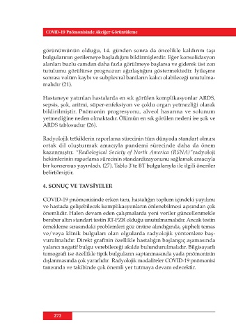 dışlanmasında çok yararlıdır. Radyolojik modaliteler COVID-19 pnömonisi