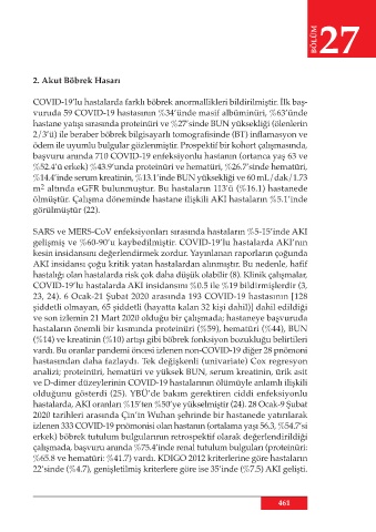 hastalarda, AKI oranları %15’ten %50’ye yükselmiştir (24). 28 Ocak-9 Şubat
